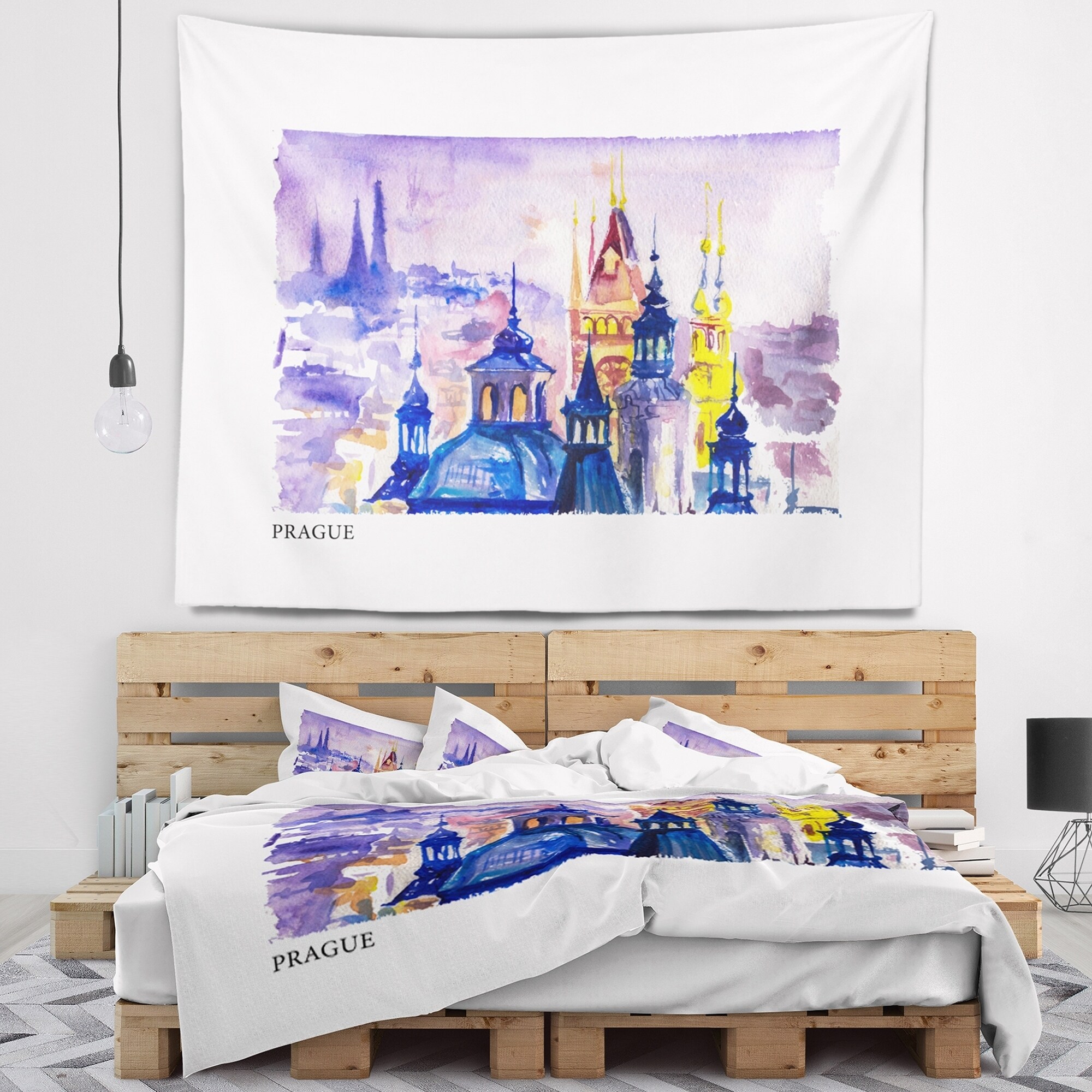 Designart 'Prague Vector Illustration' Cityscape Painting Wall Tapestry