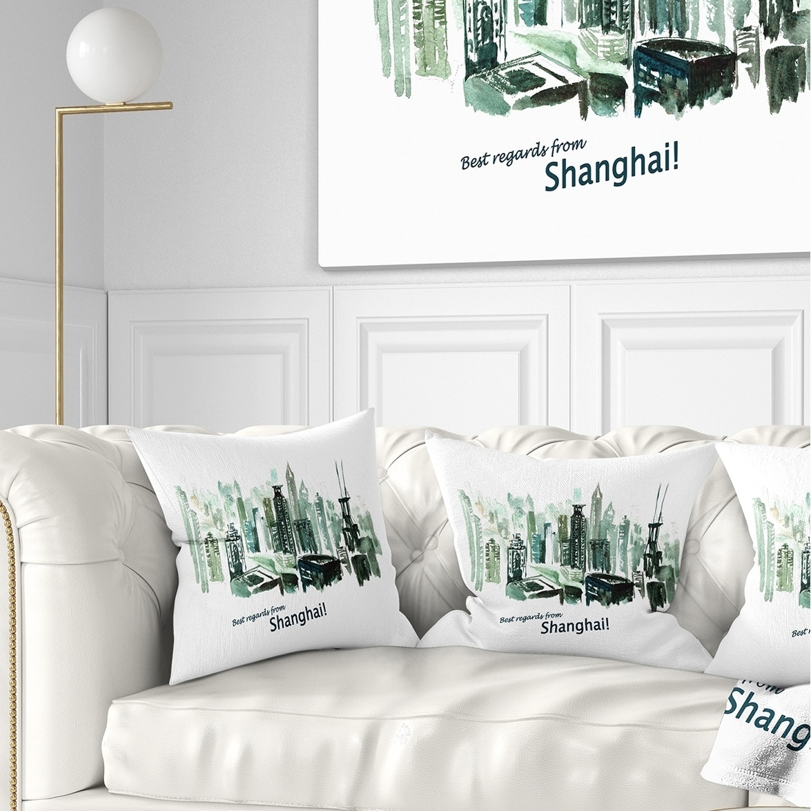 Designart 'Shanghai Vector Illustration' Cityscape Painting Throw Pillow