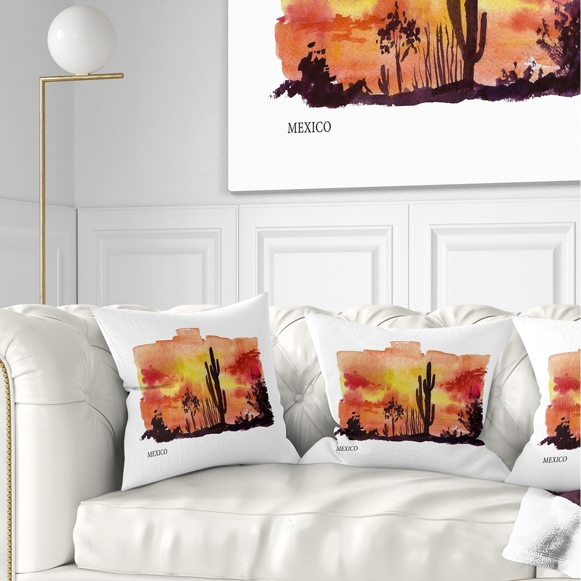 Designart 'Mexico Vector Illustration' Cityscape Painting Throw Pillow