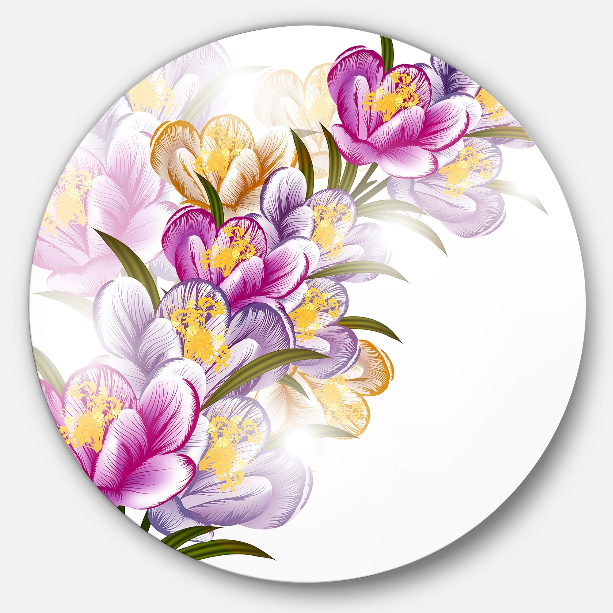 Designart 'Vector Purple Flowers' Floral Glossy Metal Wall Art