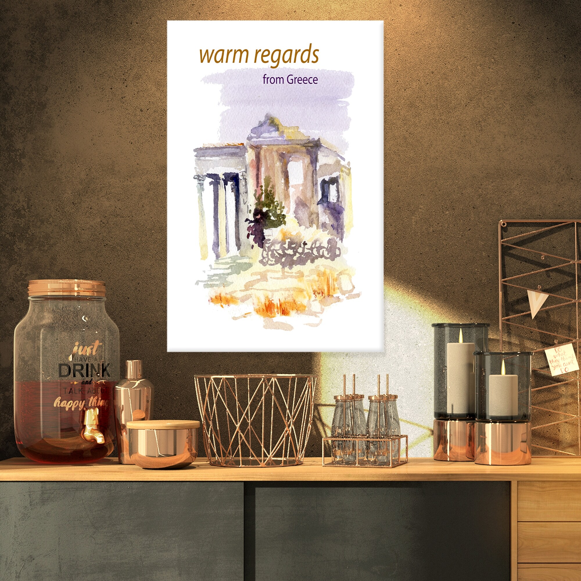 Designart "Old Greece Vector" Cityscape Painting Canvas Print