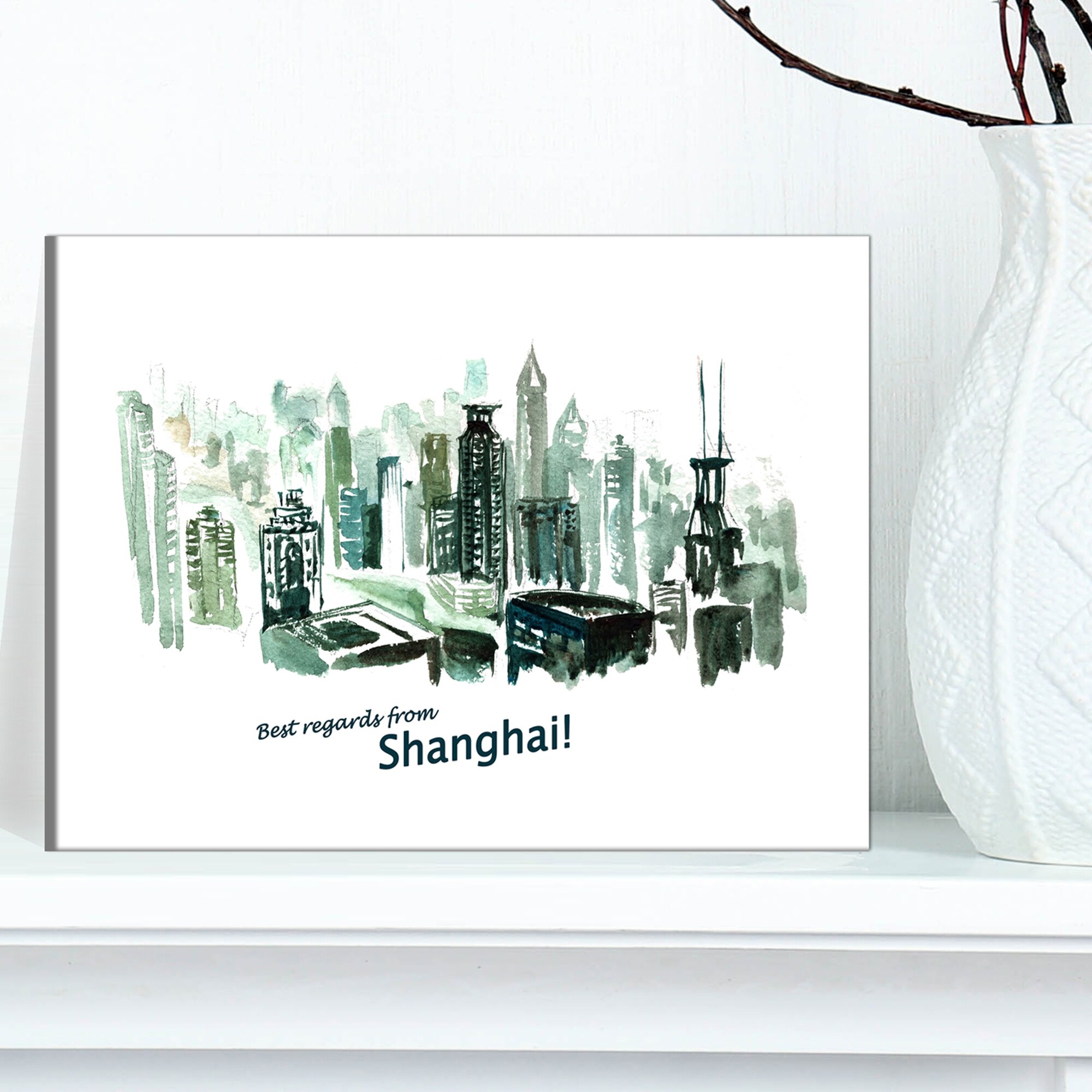 Designart "Shanghai Vector" Cityscape Painting Canvas Print