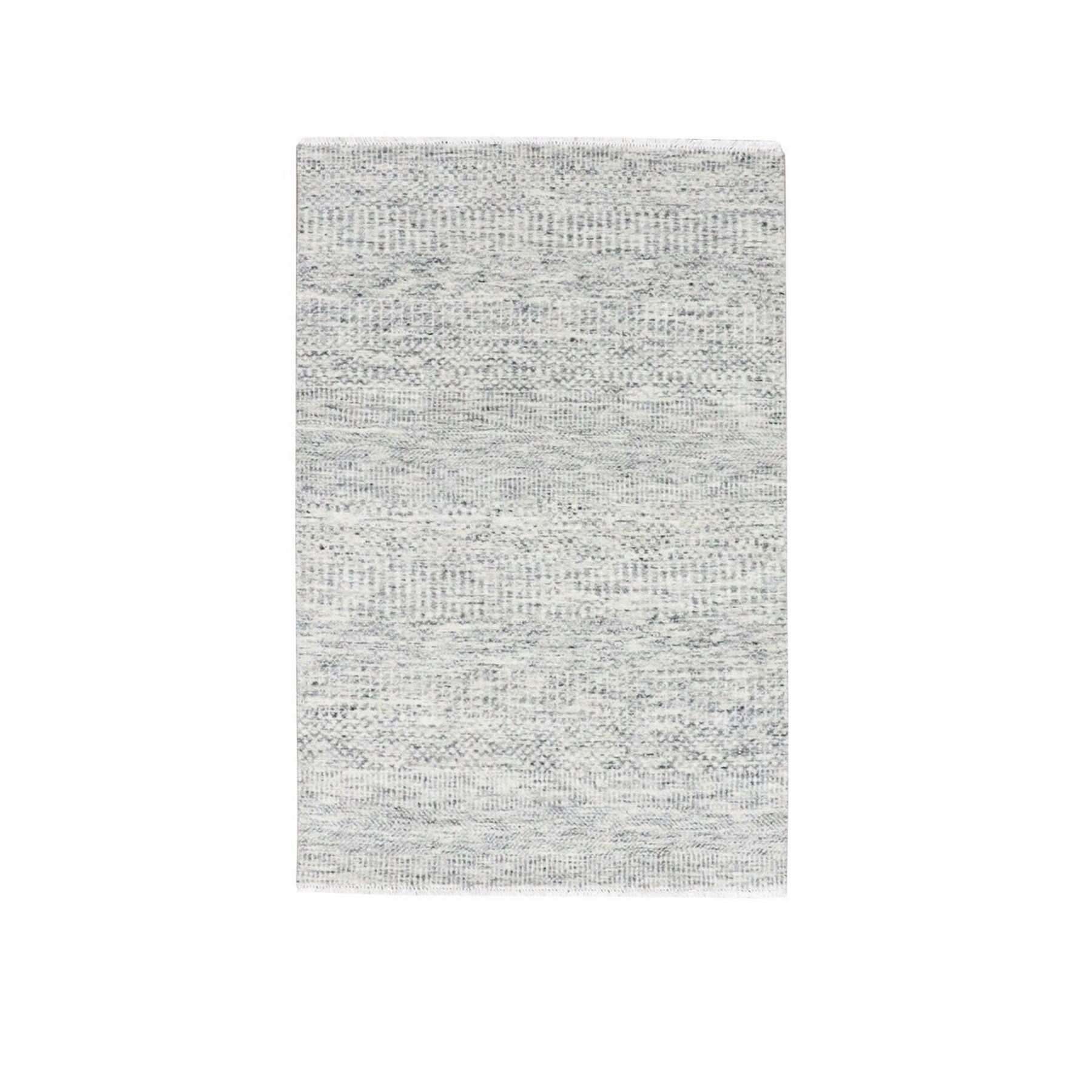 Hand Knotted Grey Modern and Contemporary with Wool & Silk Oriental Rug (3'3" x 5'1") - 3'3" x 5'1"