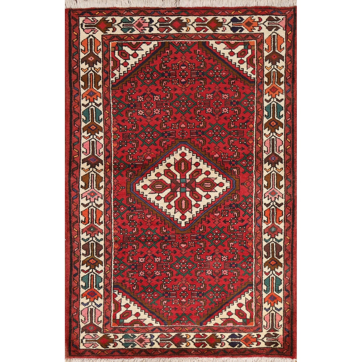 Vintage Traditional Geometric Hamedan Rug Handmade Wool Carpet - 3'6" x 5'1"