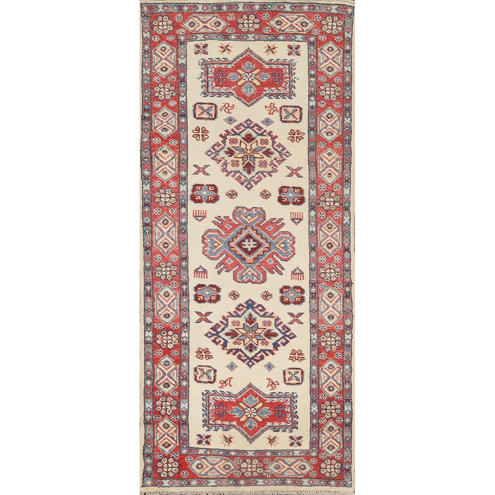 Geometric Traditional Oriental Kazak Wool Runner Rug Handmade Carpet - 2'1" x 5'1"