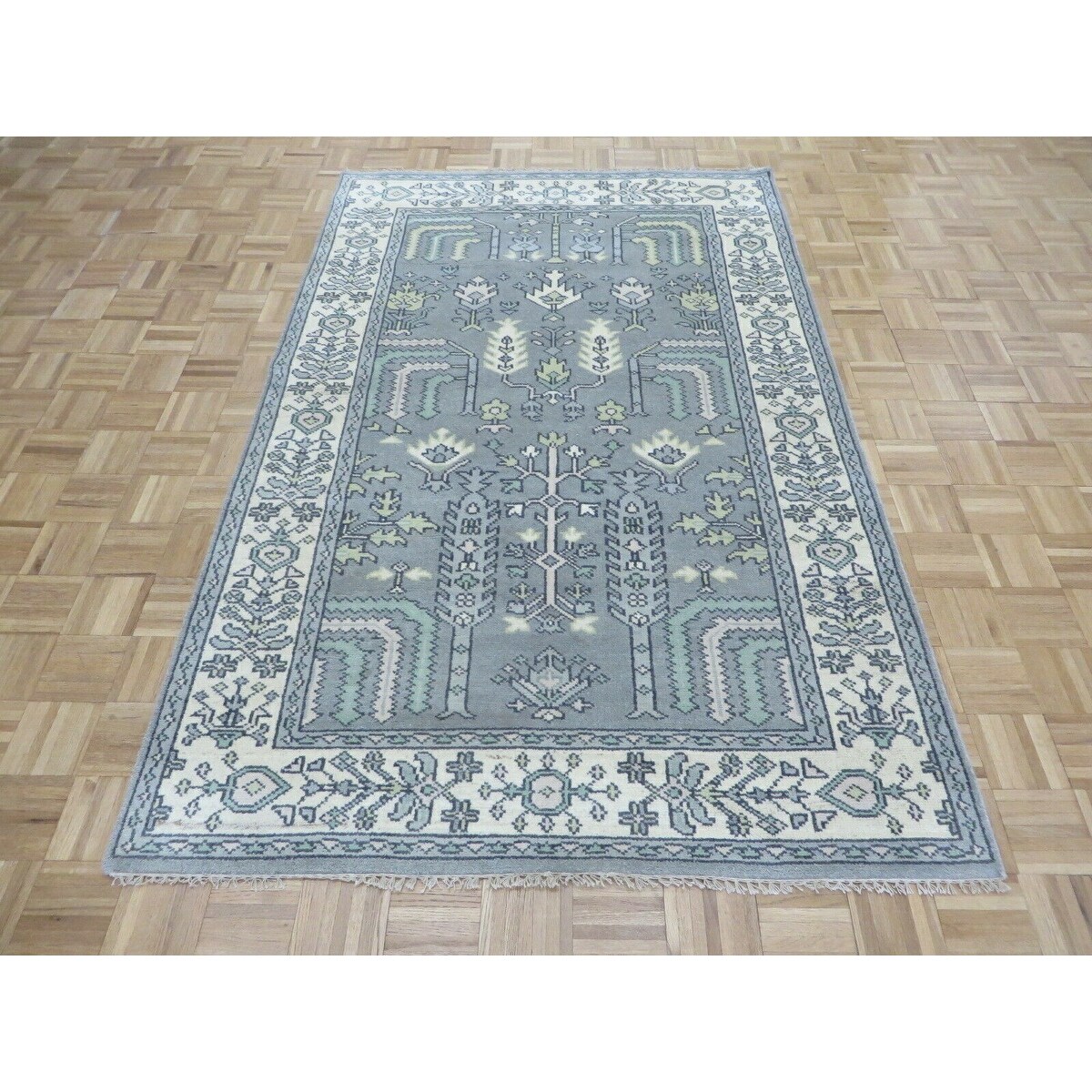 Hand Knotted Gray Oushak with Wool Oriental Rug (5'1" x 8') - 5'1" x 8'