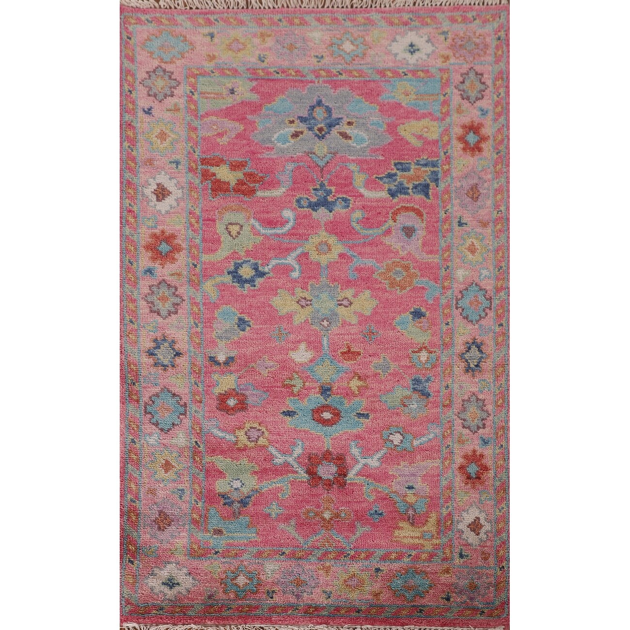 Pink Oushak Oriental Accent Rug Handmade Wool Carpet - 3'0"x 5'1"
