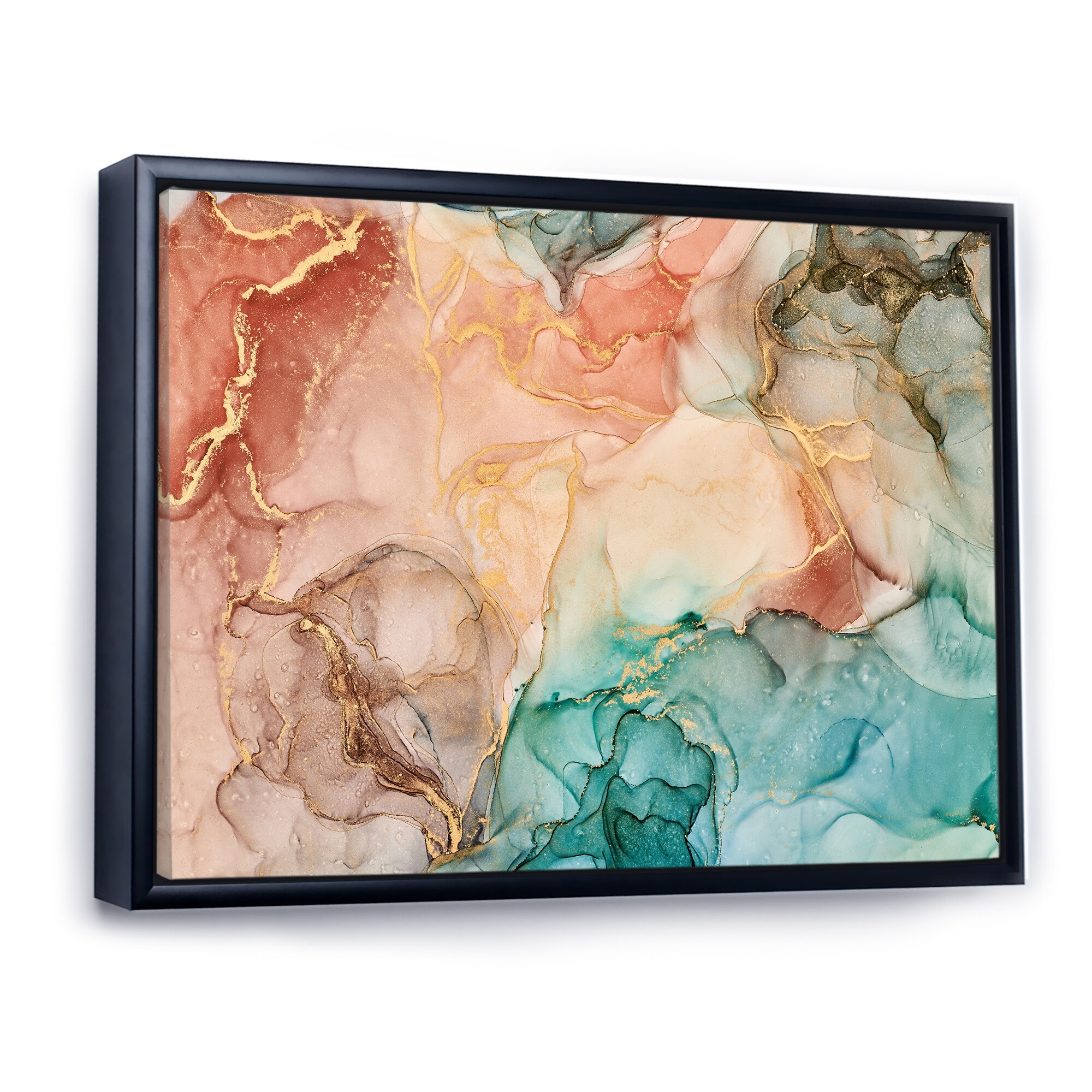 Designart "Pink & Marble Fluid Art" Abstract Framed Art Print
