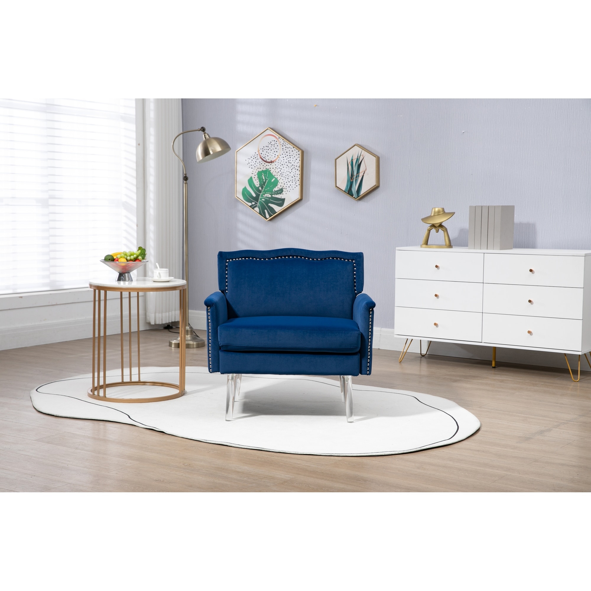 Velvet Upholstered Nailheads Living Room Accent Chair With Acrylic Feet