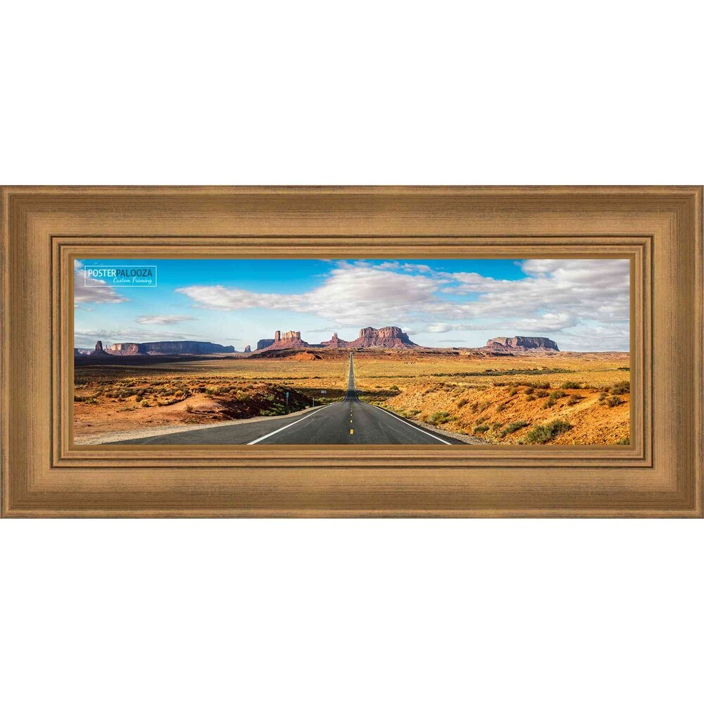 40x20 Traditional Antique Gold Complete Wood Panoramic Frame with UV Acrylic, Backing, & Hardware