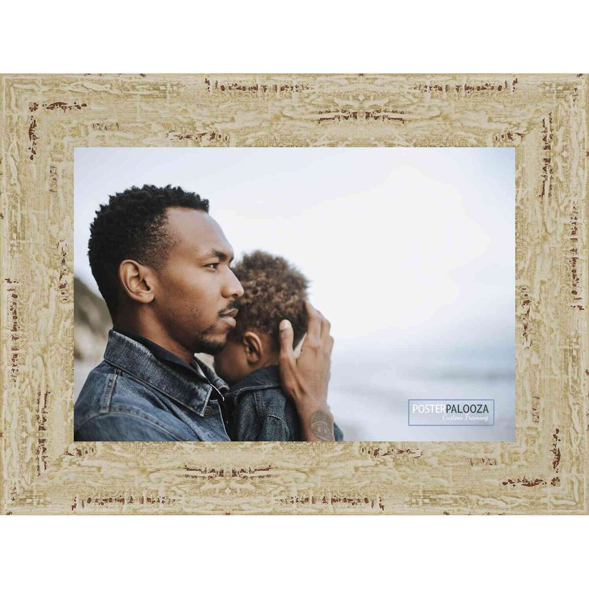 32x26 Distressed/Aged White Complete Wood Picture Frame with UV Acrylic, Foam Board Backing, & Hardware