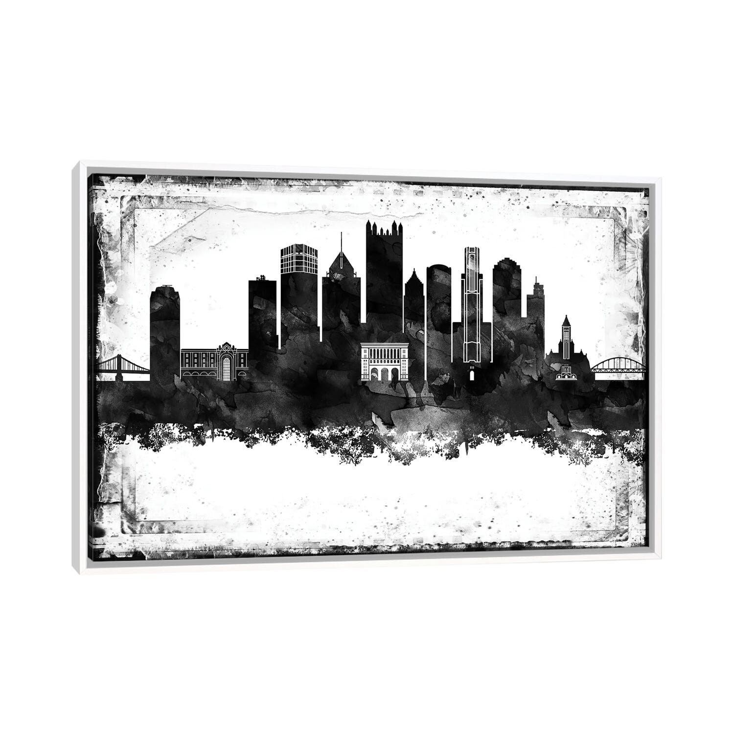 iCanvas "Pittsburgh Black And White Framed Skylines" by WallDecorAddict Framed Canvas Print
