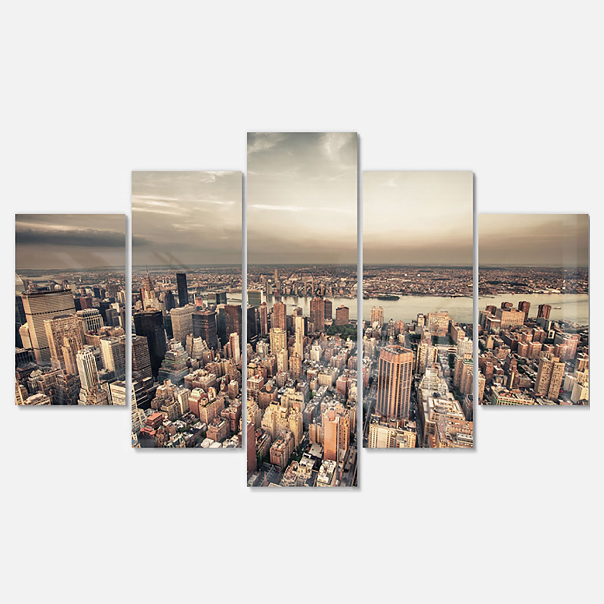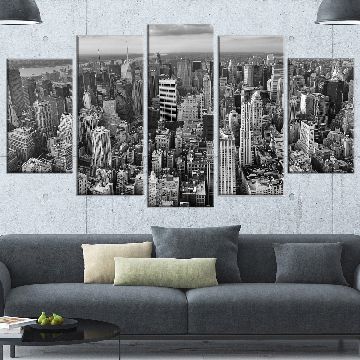 Designart "Panoramic Aerial View of Manhattan" Modern Cityscape Canvas Artwork Print