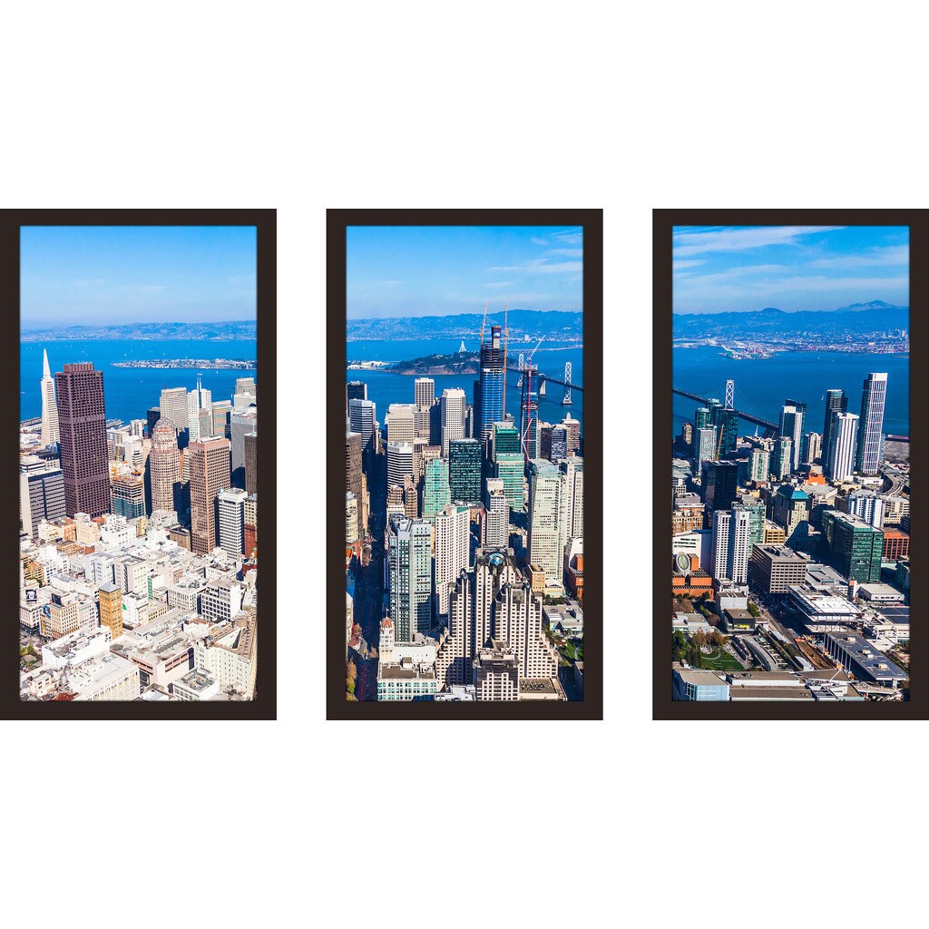 "Aerial view of San Francisco" Framed Plexiglass Wall Art Set of 3
