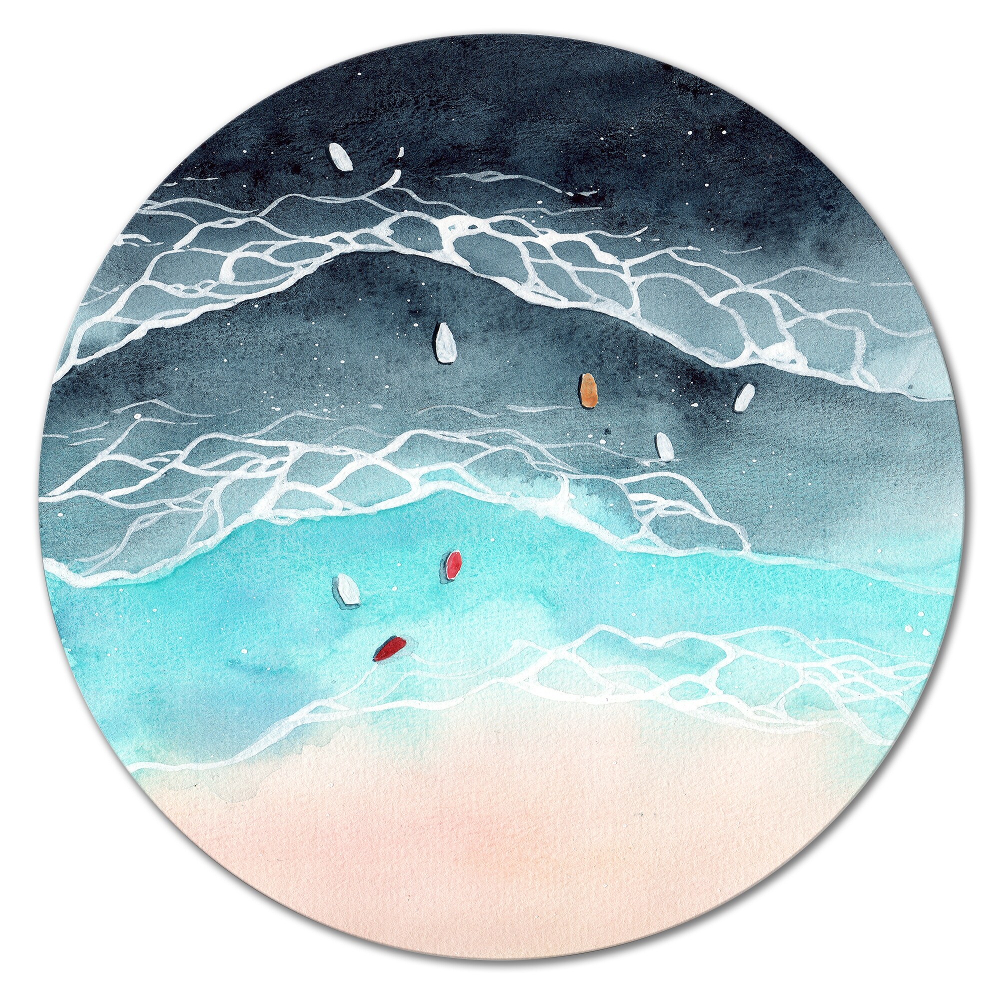 Designart 'Aerial View on Tropical Ocean Waves' Nautical & Coastal Metal Circle Wall Art