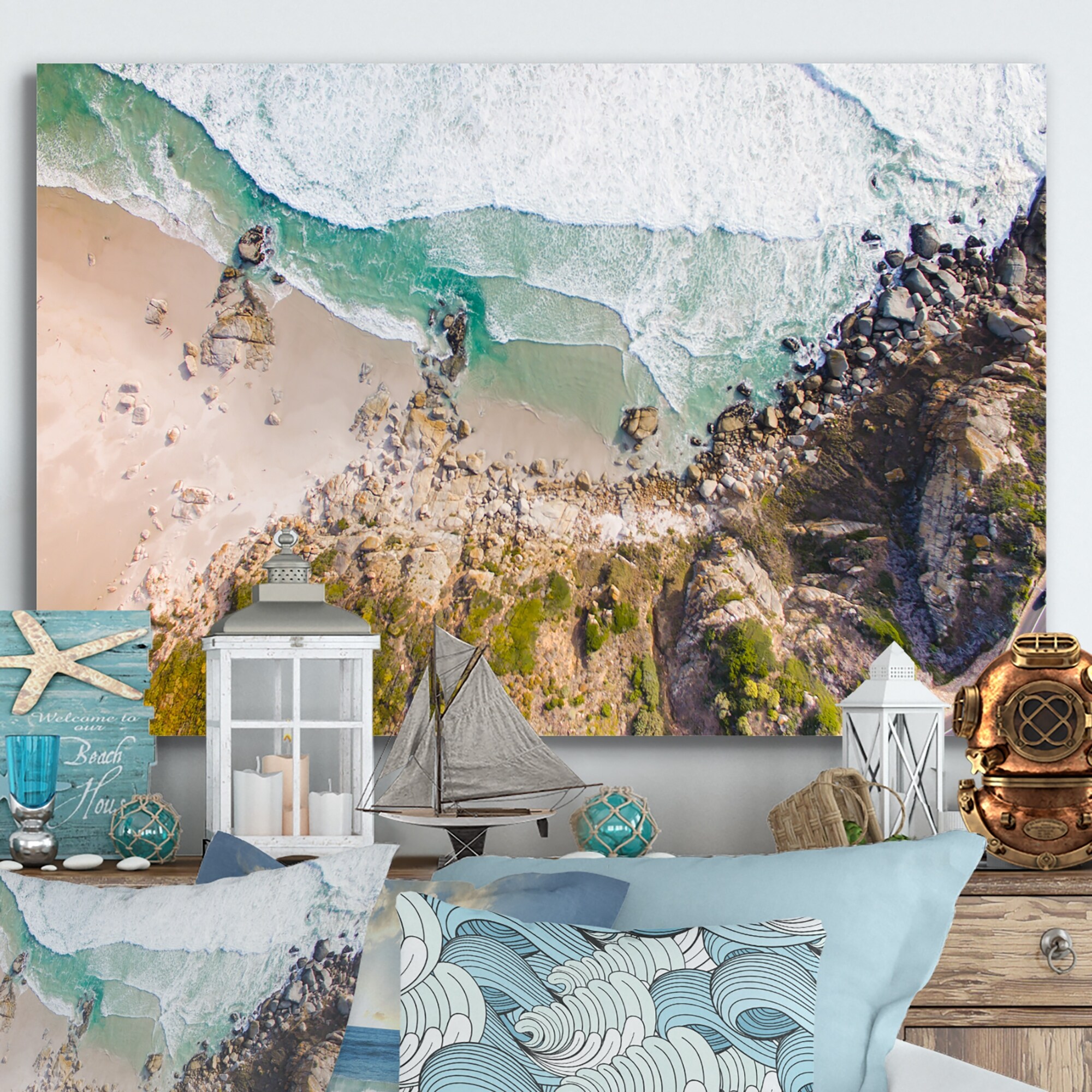 Designart "Beach Rocks And Shore Aerial View V" Nautical & Coastal Canvas Wall Art