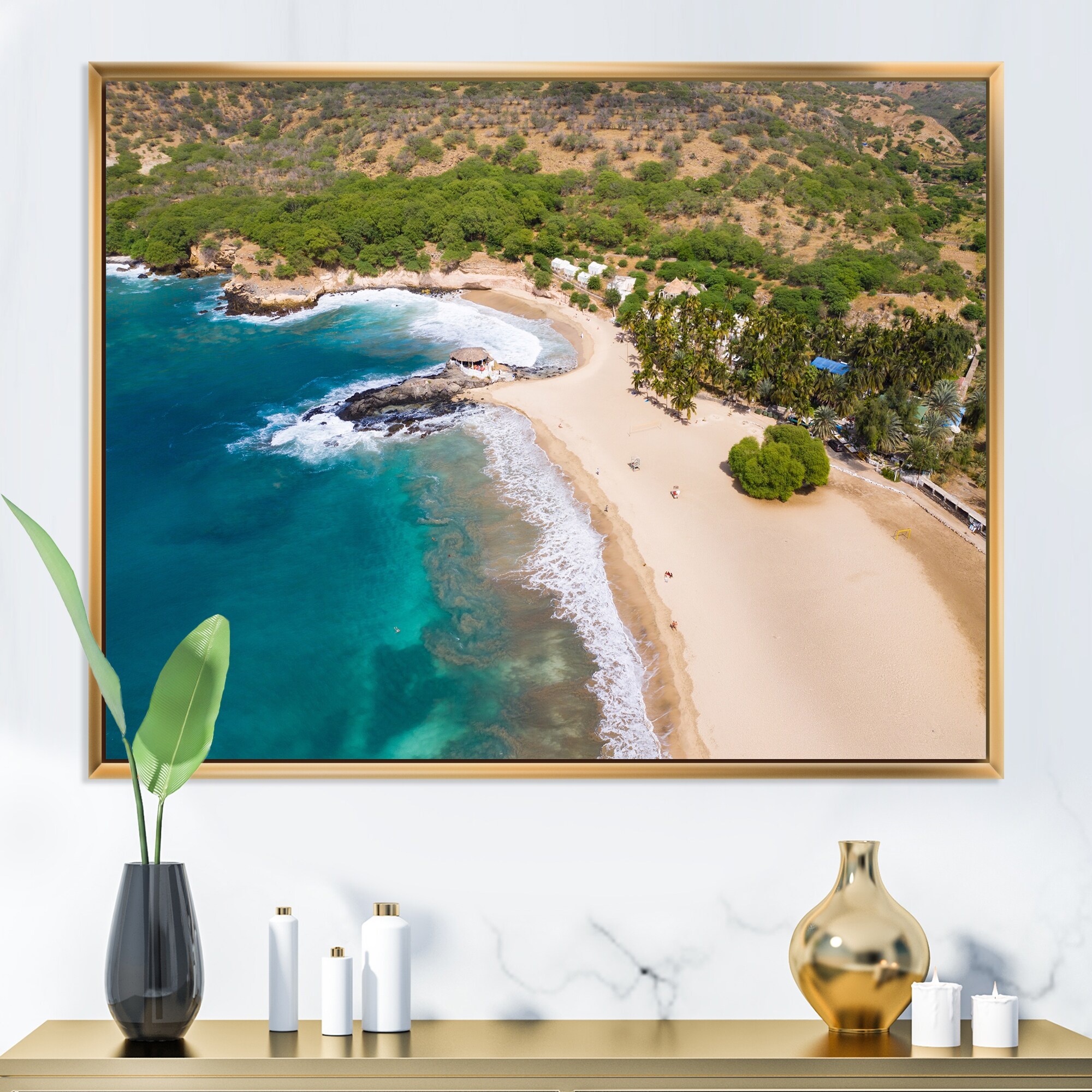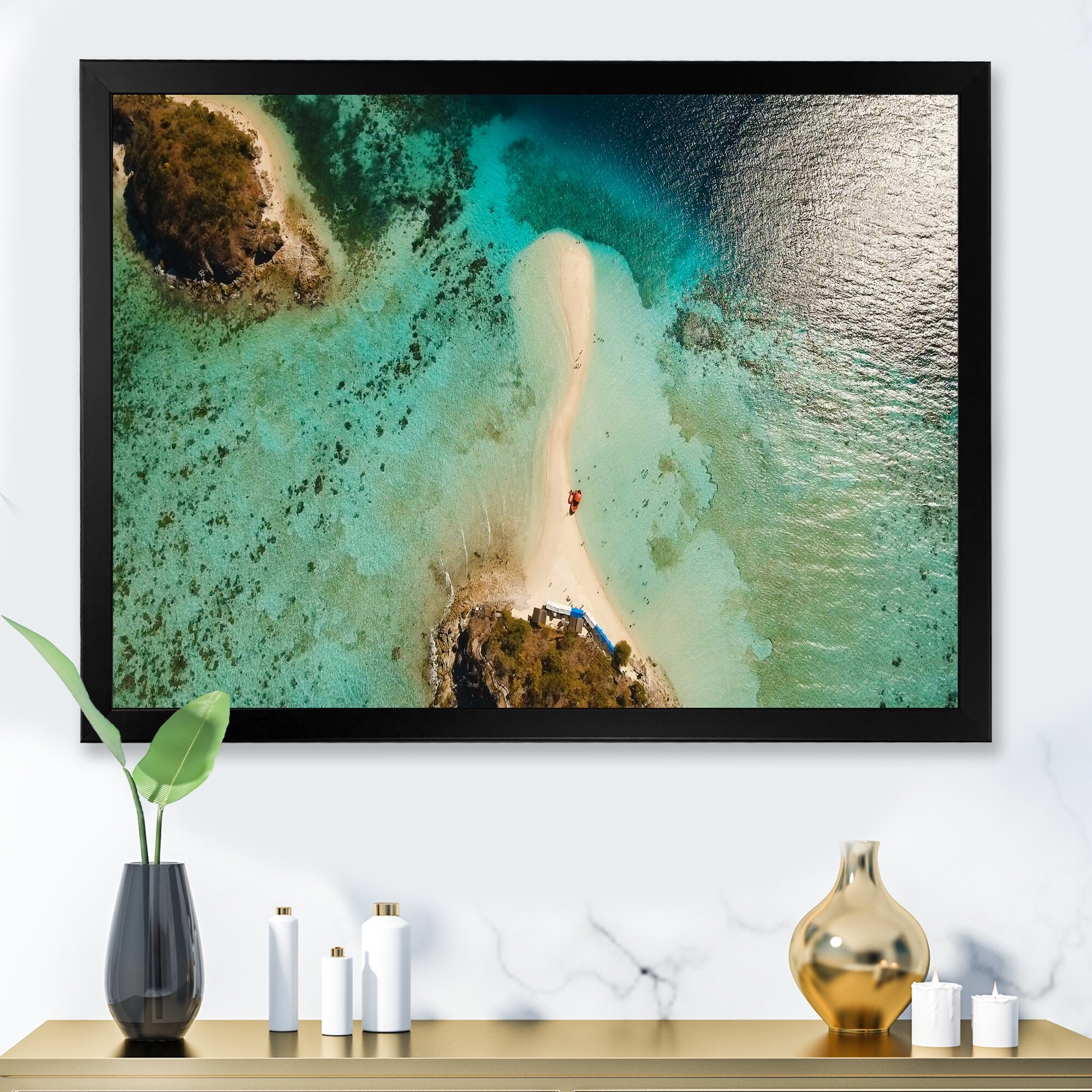 Designart "Aerial View of Tropical Beach I" Nautical & Coastal Framed Canvas Wall Art Print