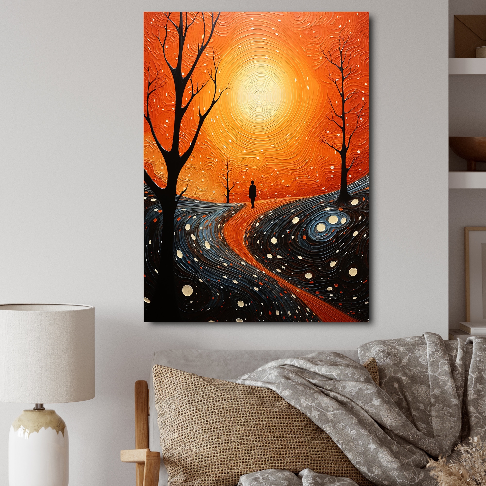Designart "Orange Tree Aerial Dance Pointillism" Landscape Trees Wall Art Prints