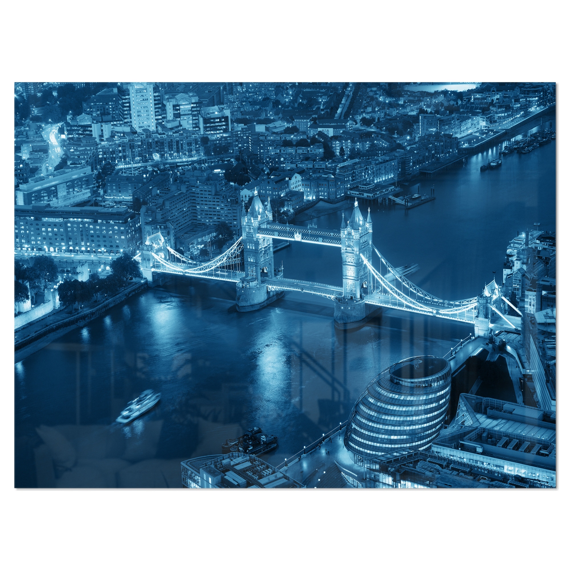 Blue London Night Aerial View - Cityscape Glossy Metal Wall Art