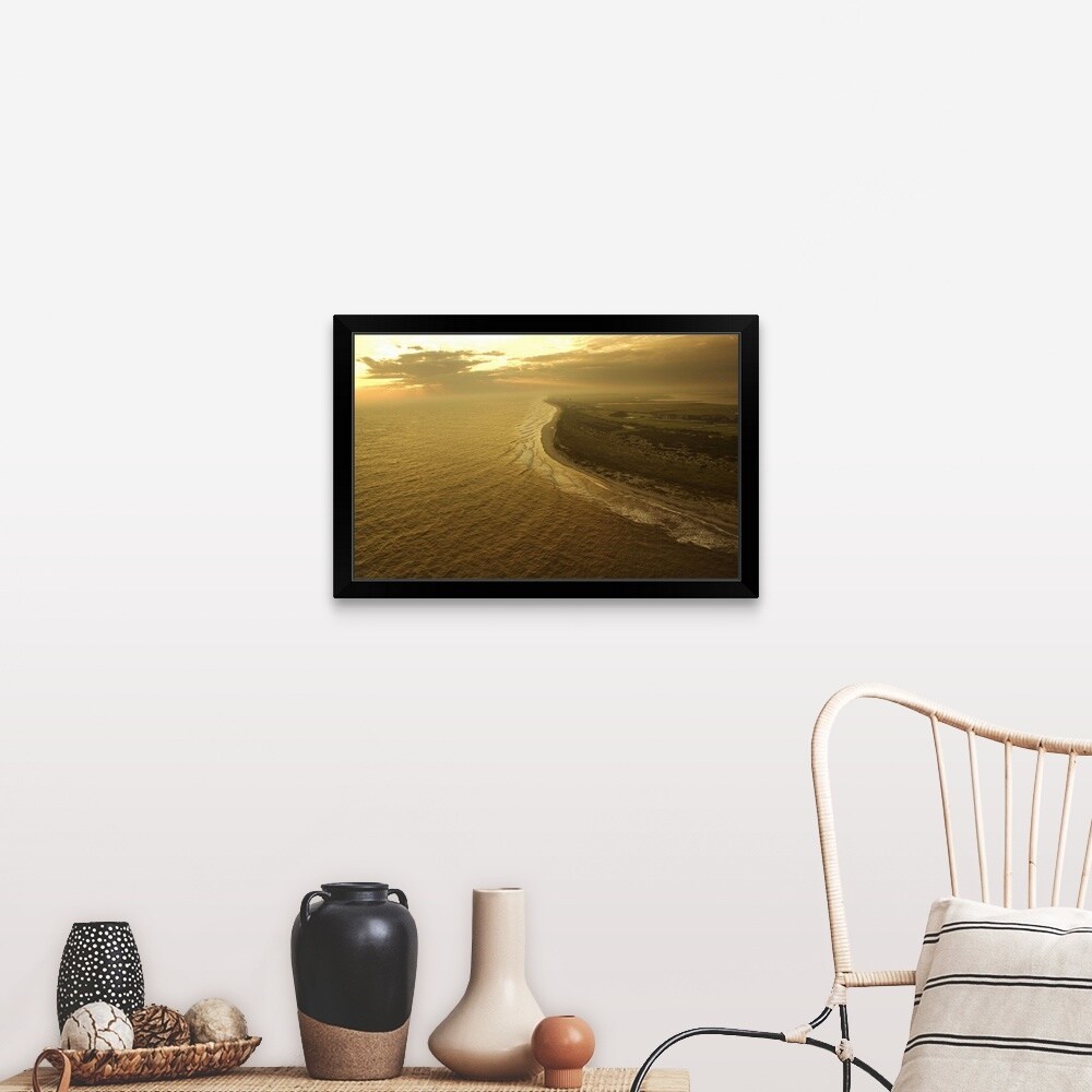 "Aerial view of coastline at dusk, Bald Head Island, North Carolina" Black Framed Print