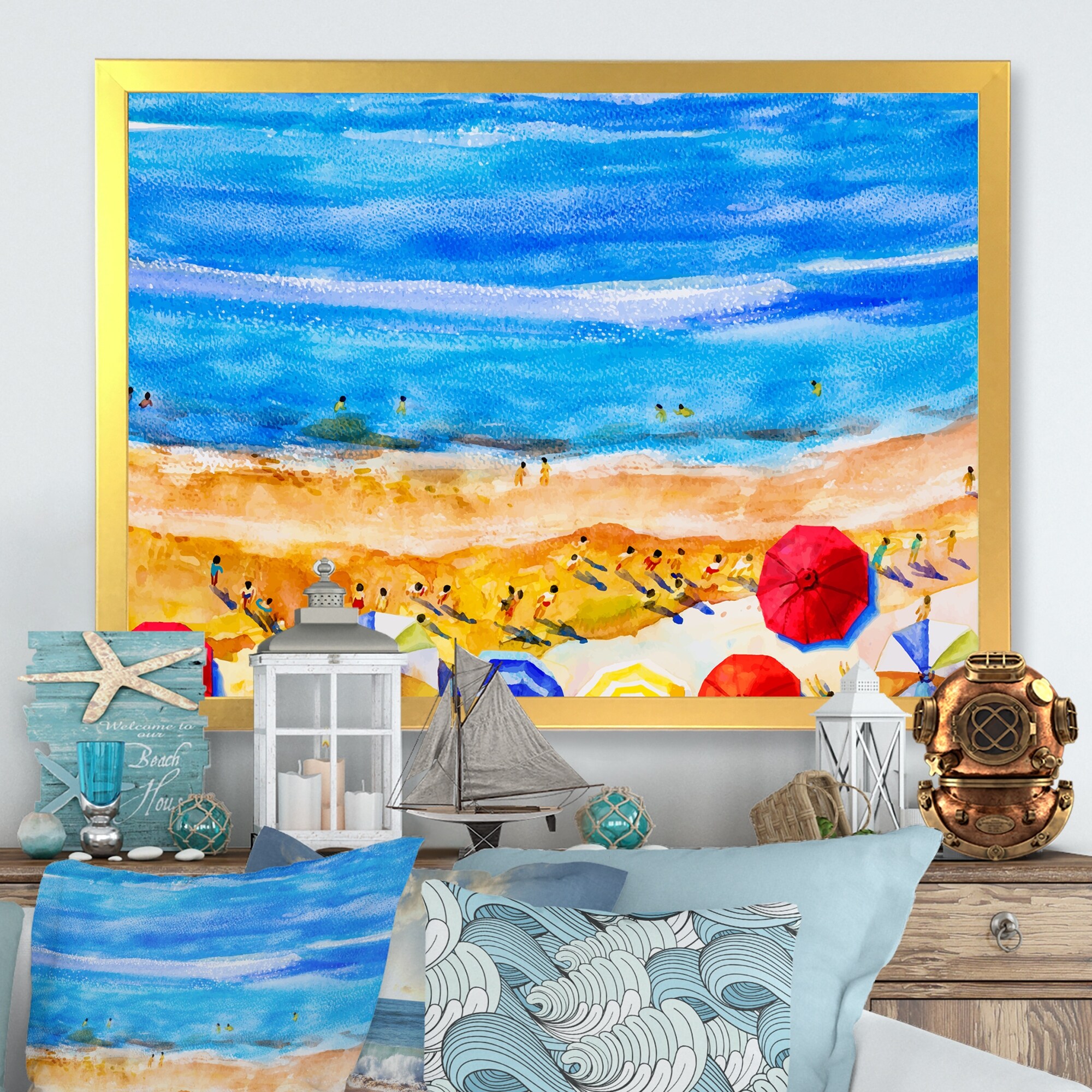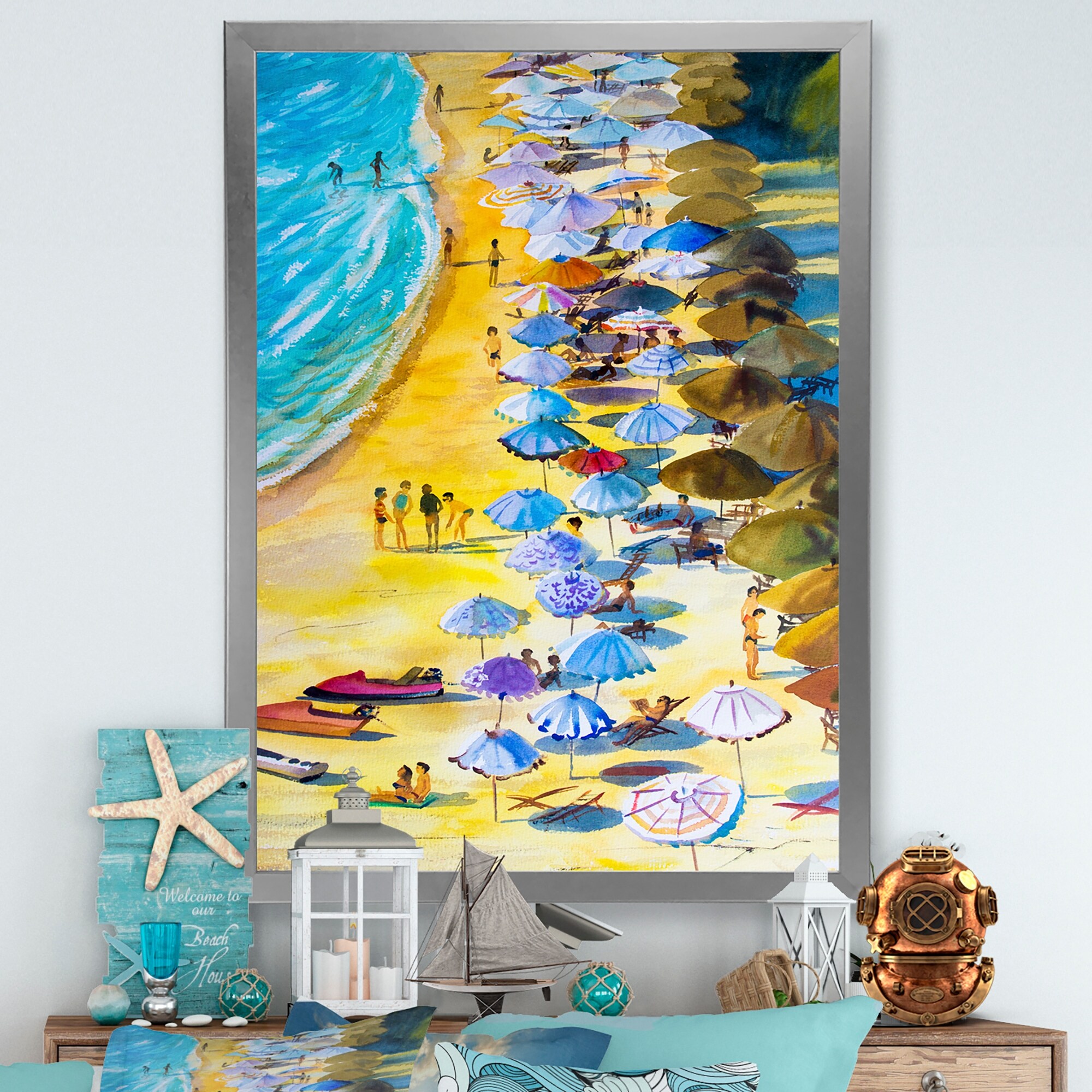 Designart "Ocean Beach Aerial View VIII" Nautical & Coastal Framed Wall Decor