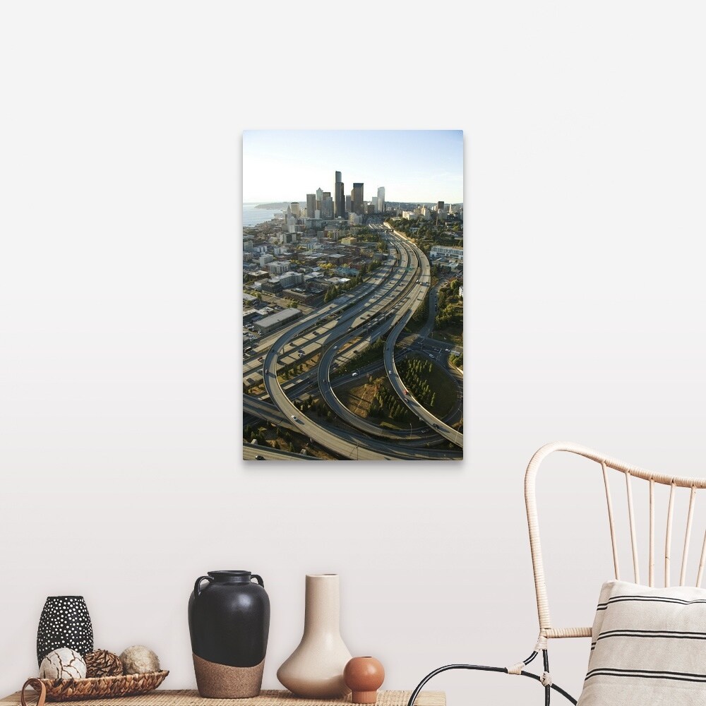 "Aerial view of Seattle freeways and downtown" Canvas Wall Art