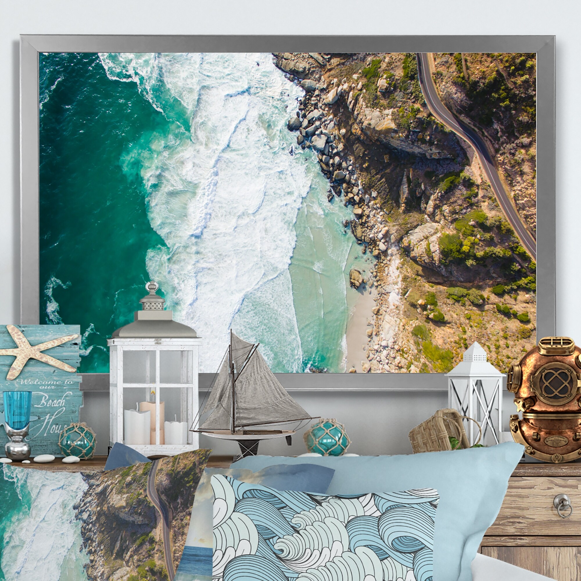 Designart "Ocean Beach Aerial View" Nautical & Coastal Framed artwork