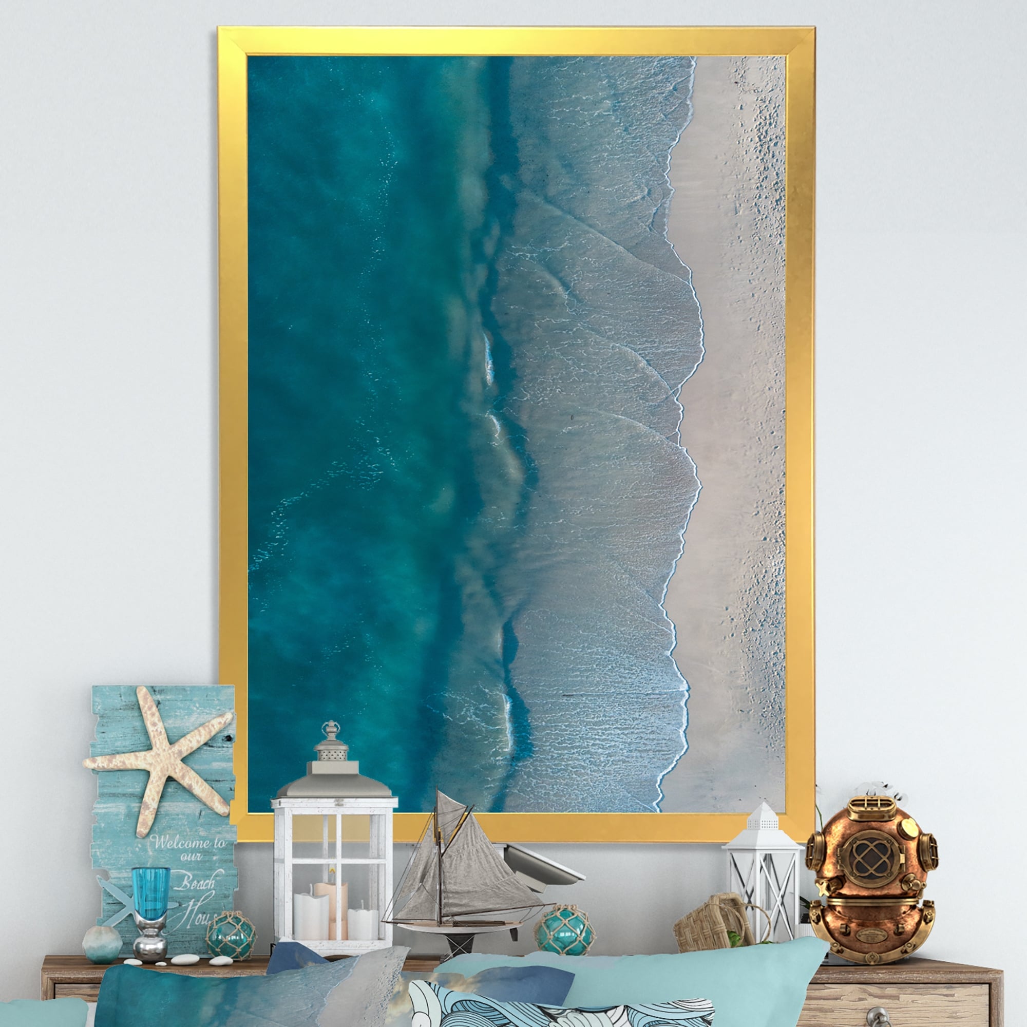 Designart "Aerial View of Blue Ocean Beach" Nautical & Coastal Framed Canvas Wall Art Print