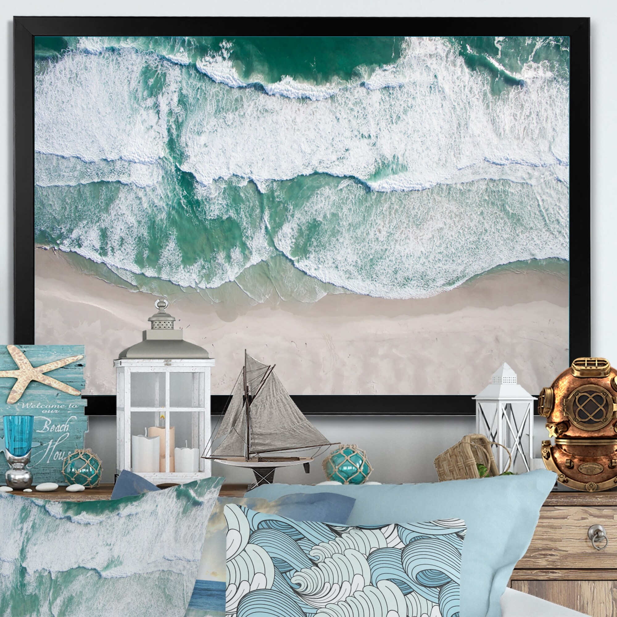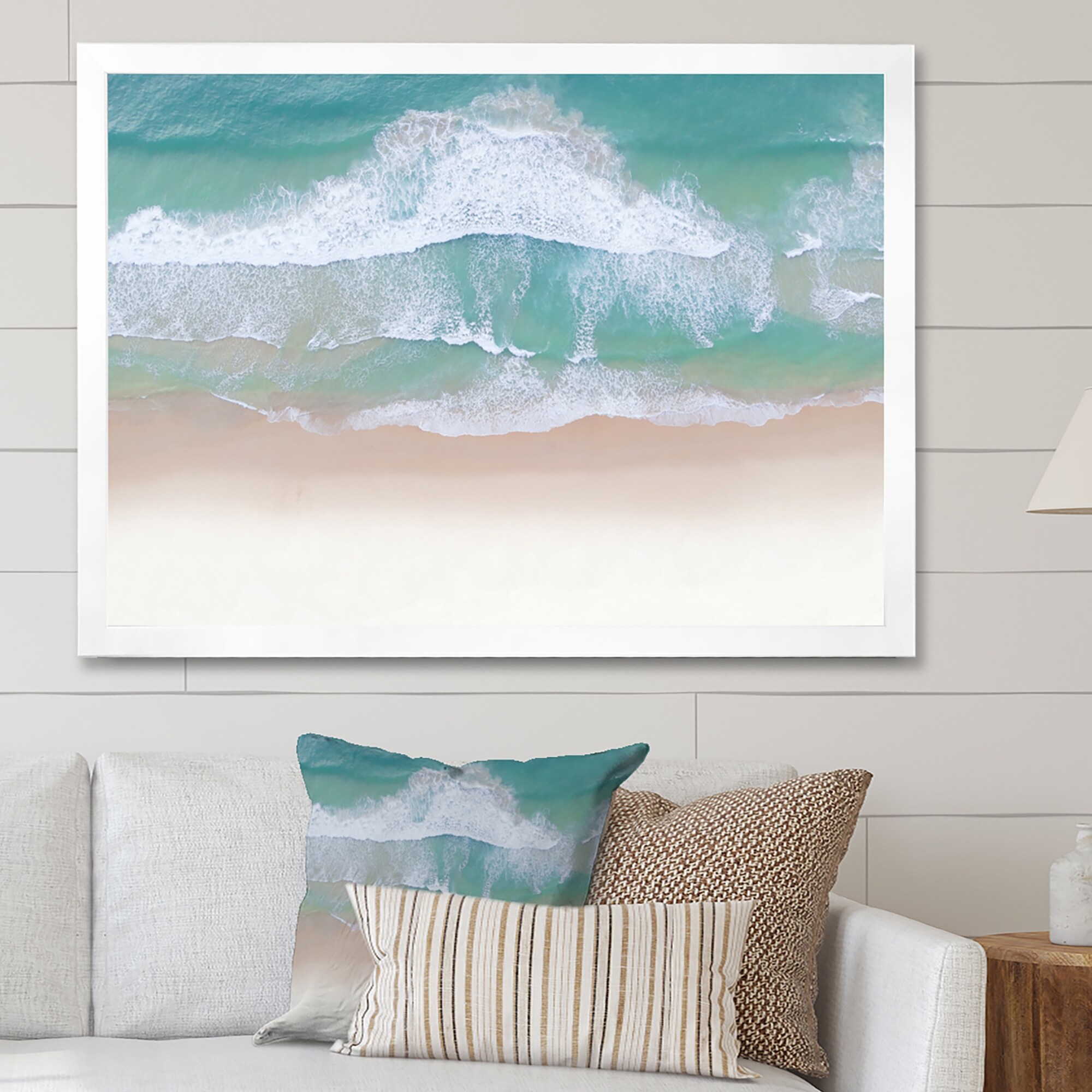 Designart "Ocean Beach Aerial View XI" Nautical & Coastal Framed Art Print