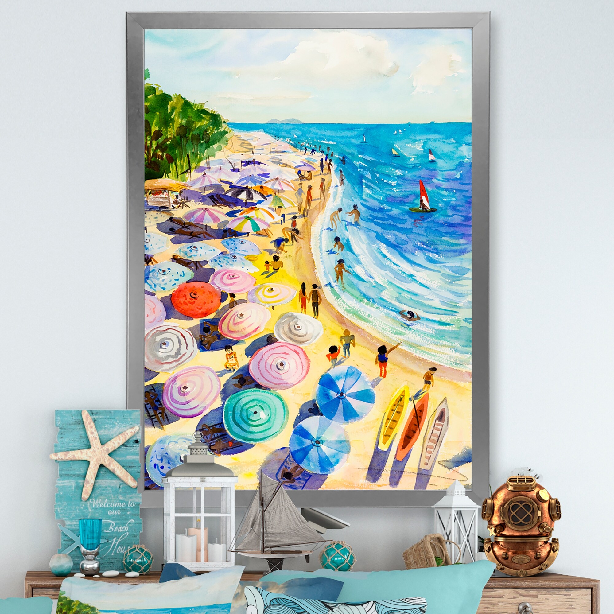 Designart "Aerial View of Tropical Beach IV" Nautical & Coastal Framed Canvas Wall Art Print
