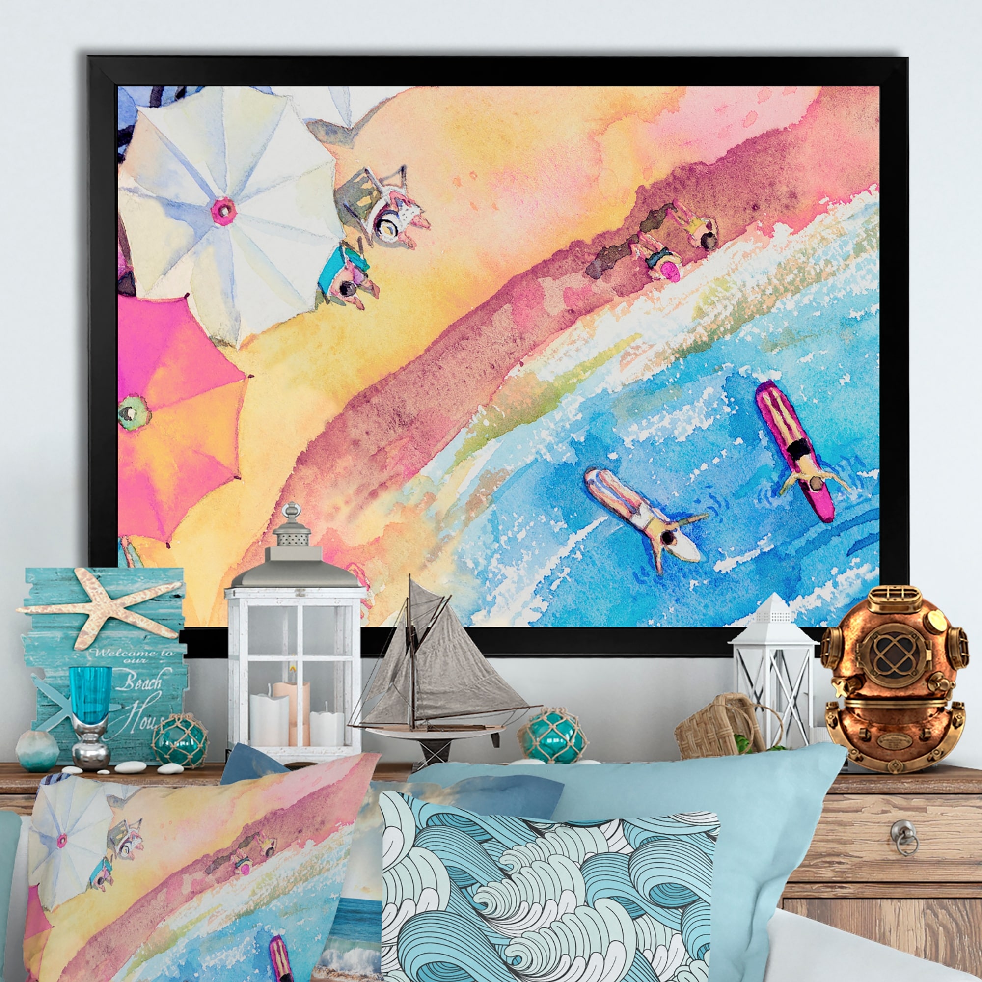 Designart "Aerial Pastel Beach California" Nautical & Coastal Framed Wall Art