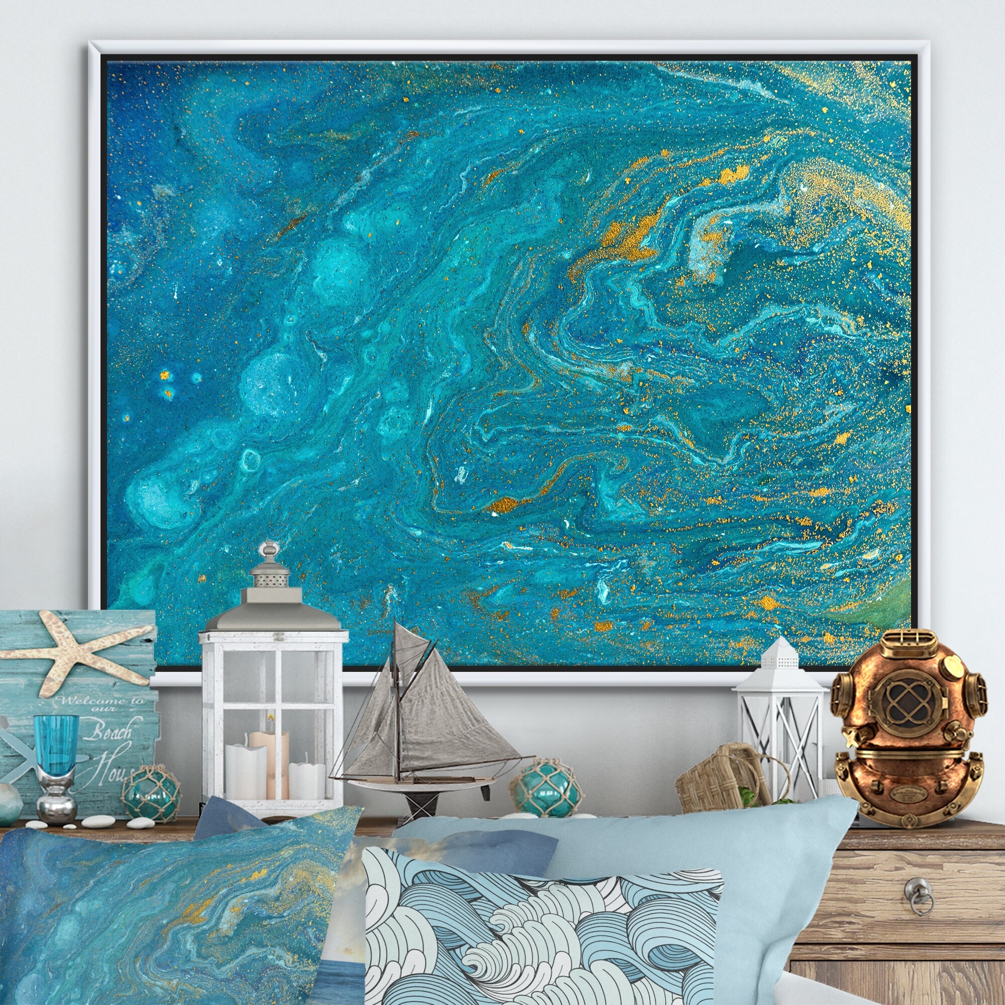Blue Sea Agate-Premium Framed Canvas - Ready to Hang
