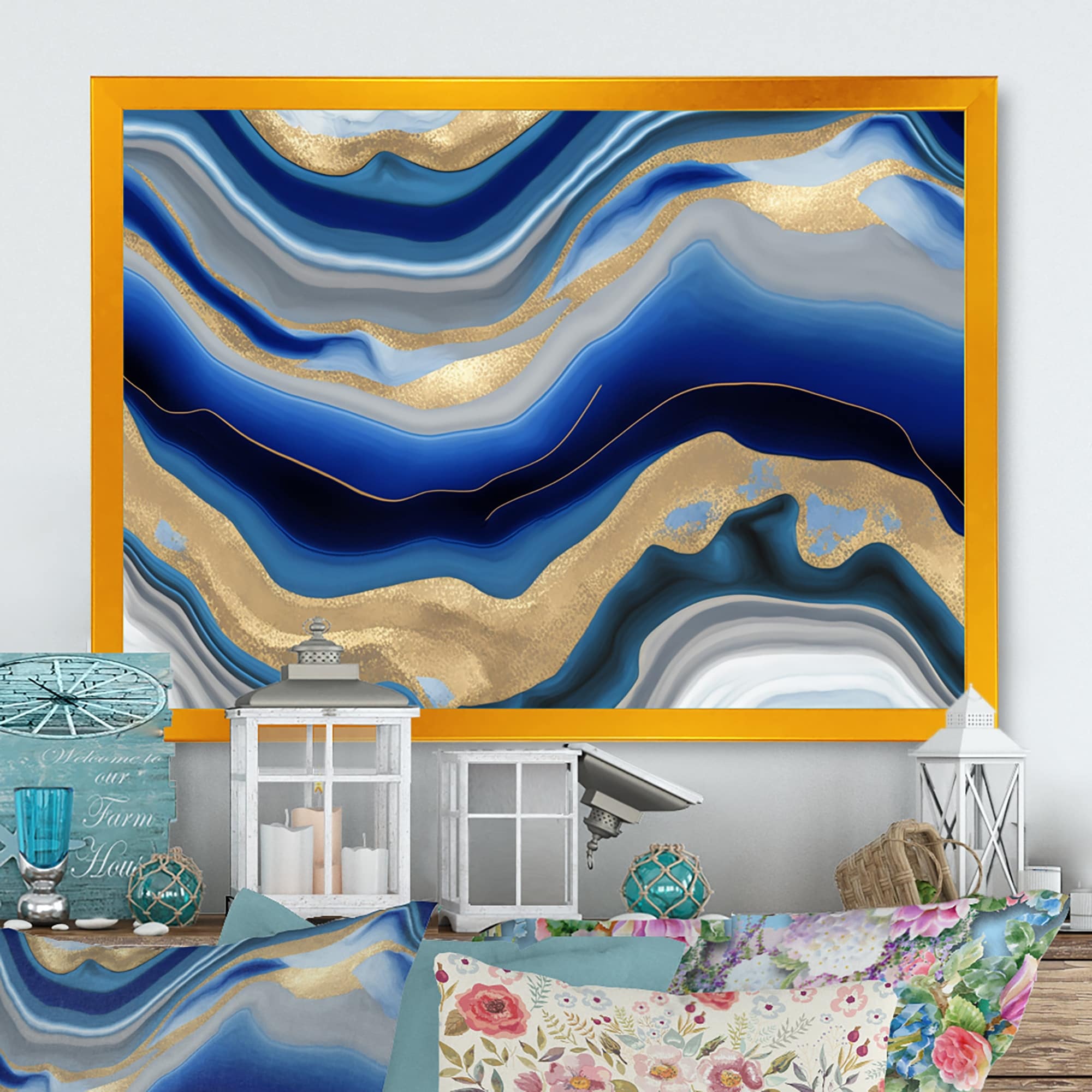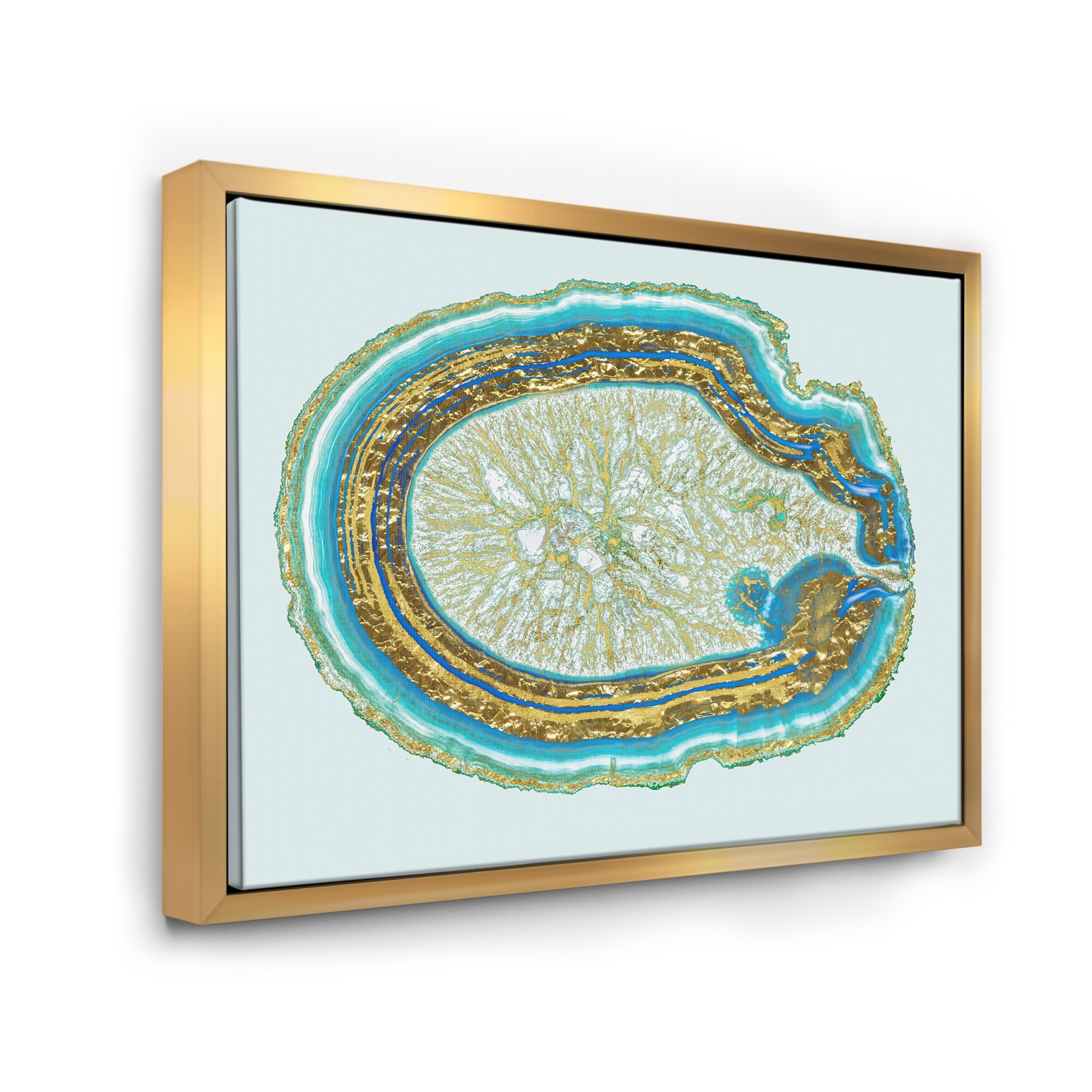 Designart "Volcanoa Blue And Gold Agate" Modern Framed Canvas Wall Art Print