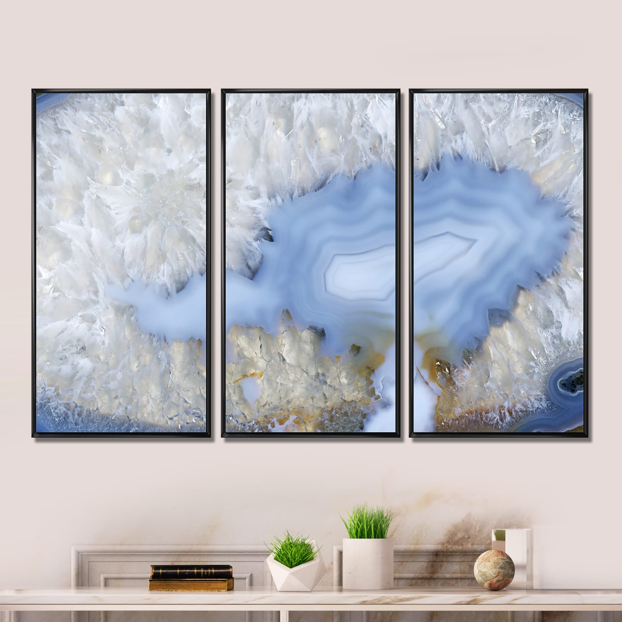 Designart "Blue agate" Stone Framed Canvas Wall Art Set of 3 - 4 Colors of Frames