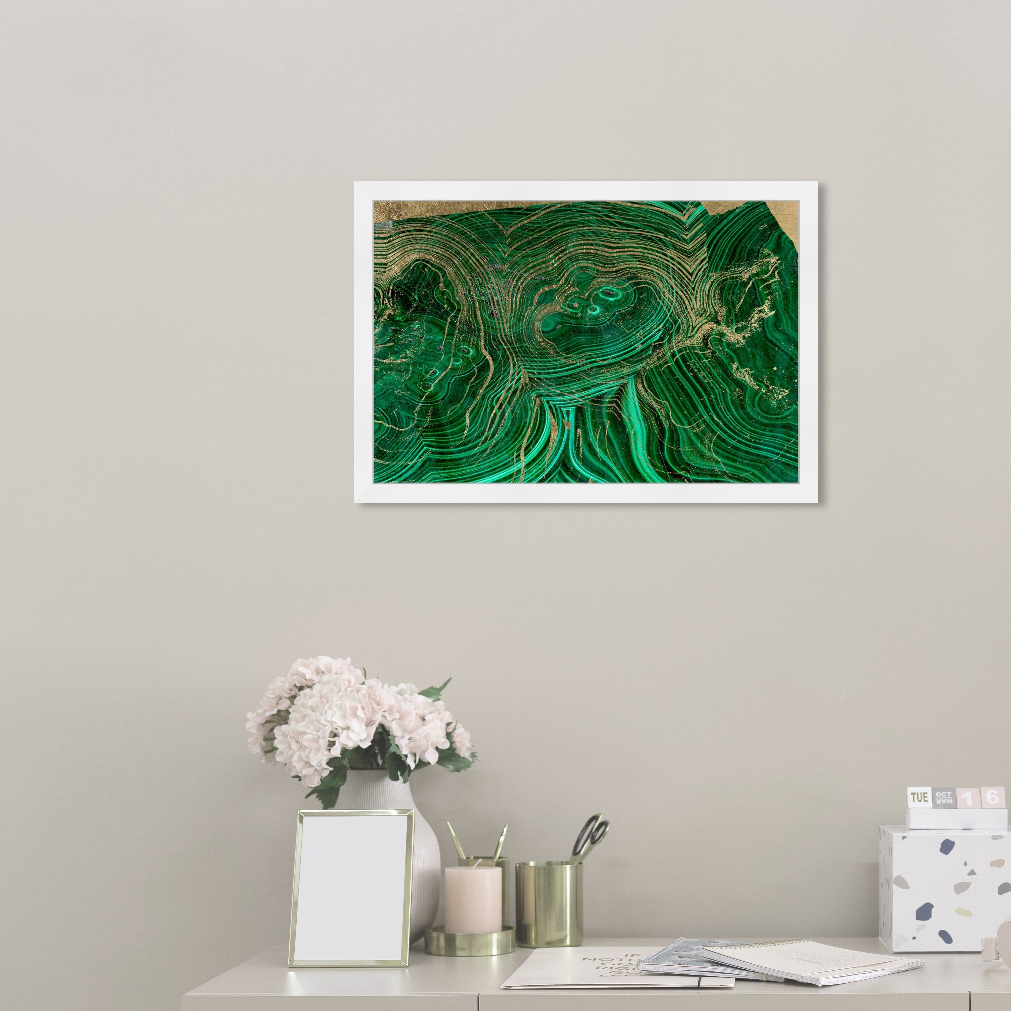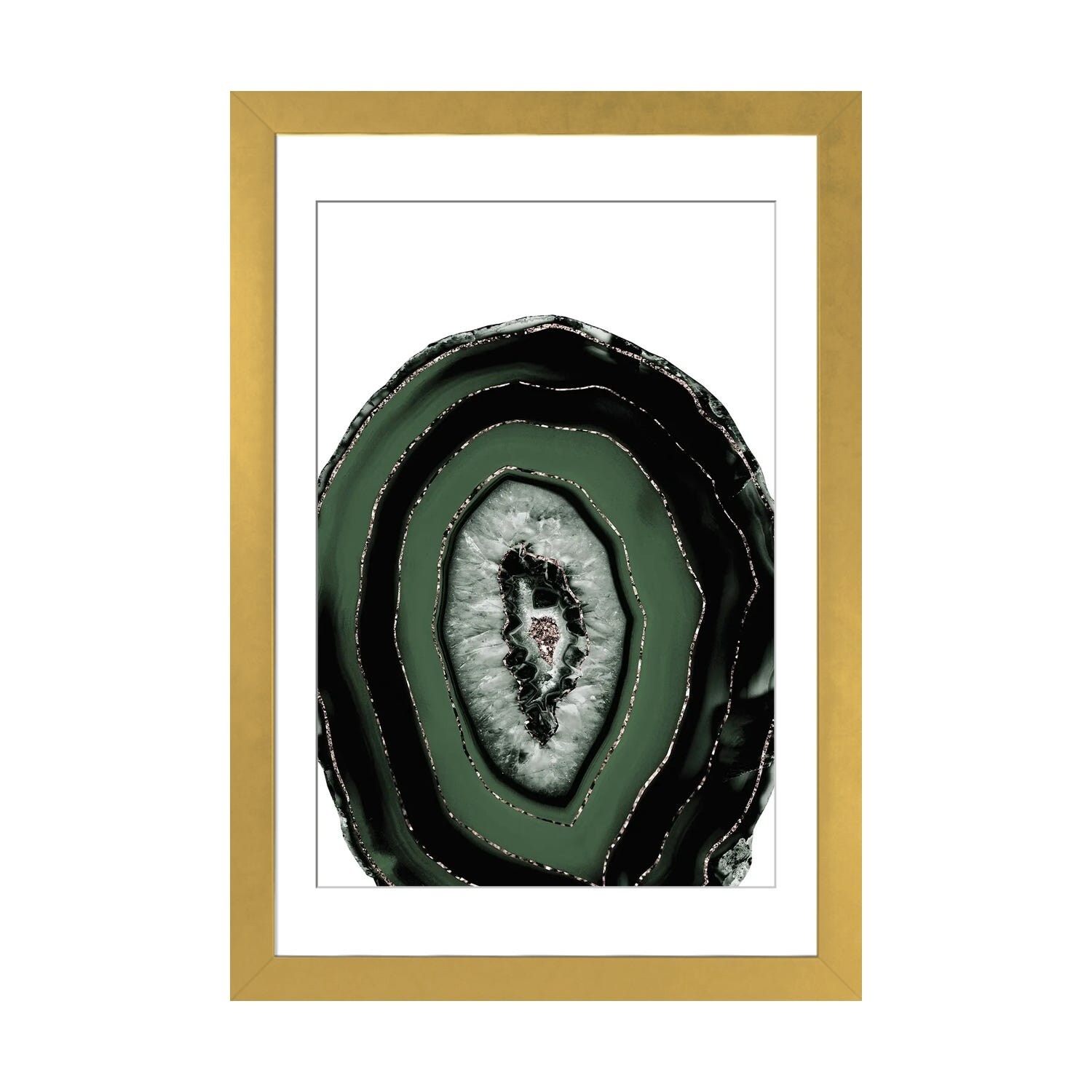 Oliver Gal 'Emerald Agate' Abstract Wall Art Framed Print Crystals - Green, Gold