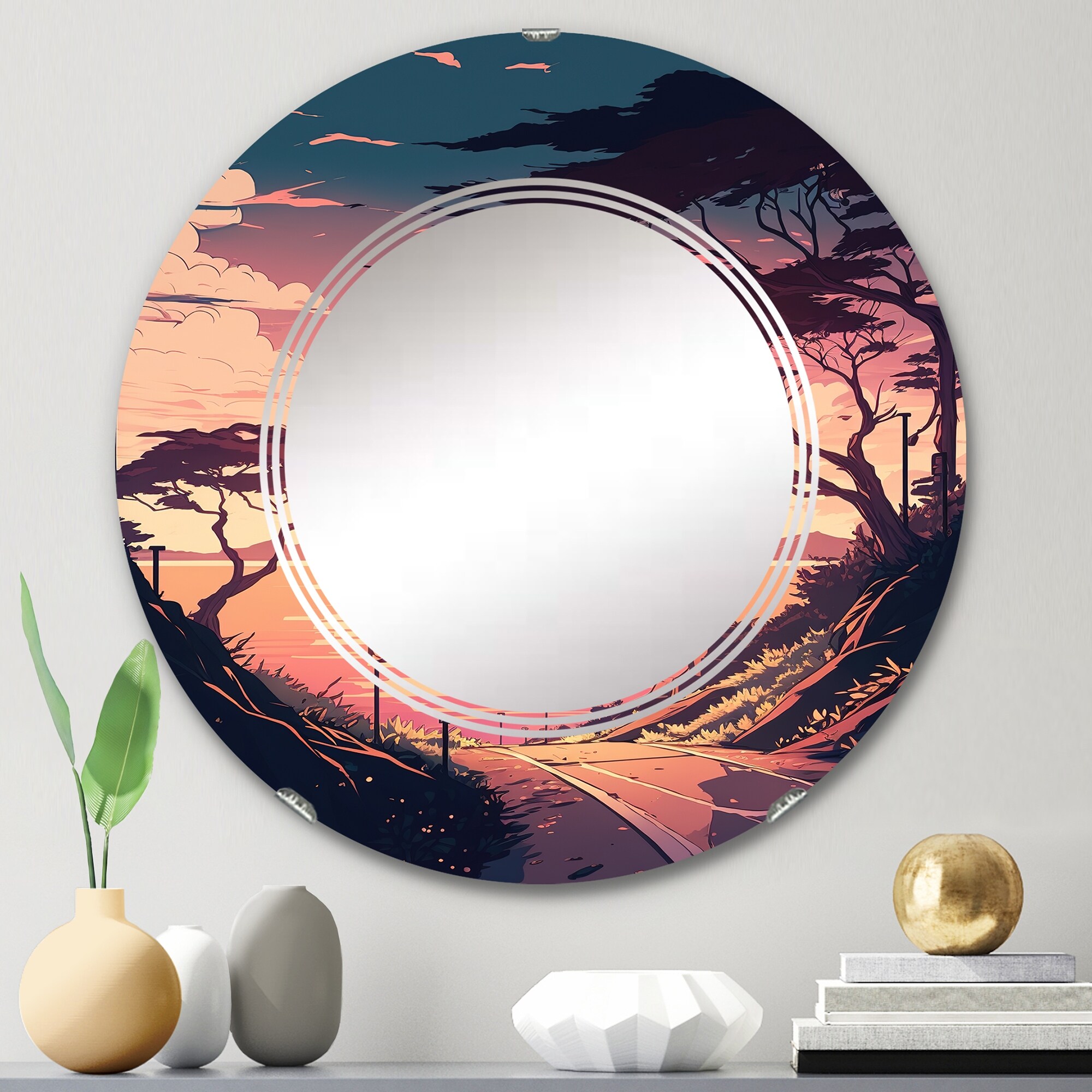 Designart 'Road To the Sunset I' Printed Modern Landscape Beach Wall Mirror
