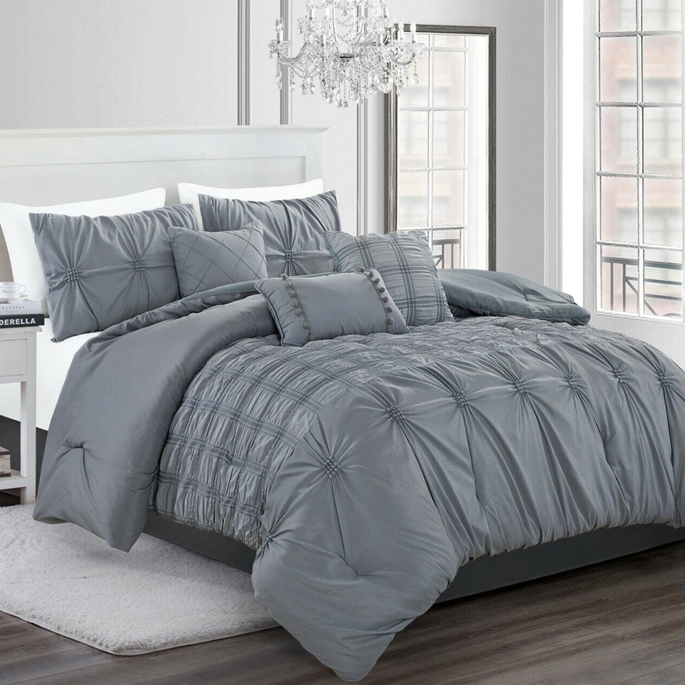 Embroidery Comforter Set 7 Alternative Queen Seersucker Grey