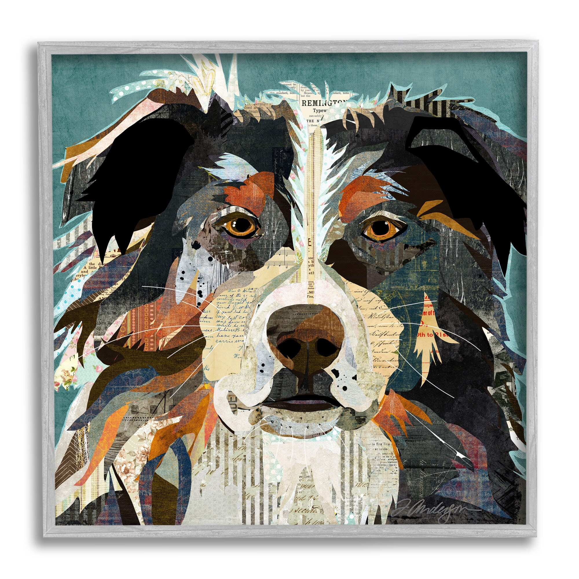 Stupell Industries Fluffy Dog Portrait Modern Script Collage Overlay Framed Wall Art, Design by Traci Anderson