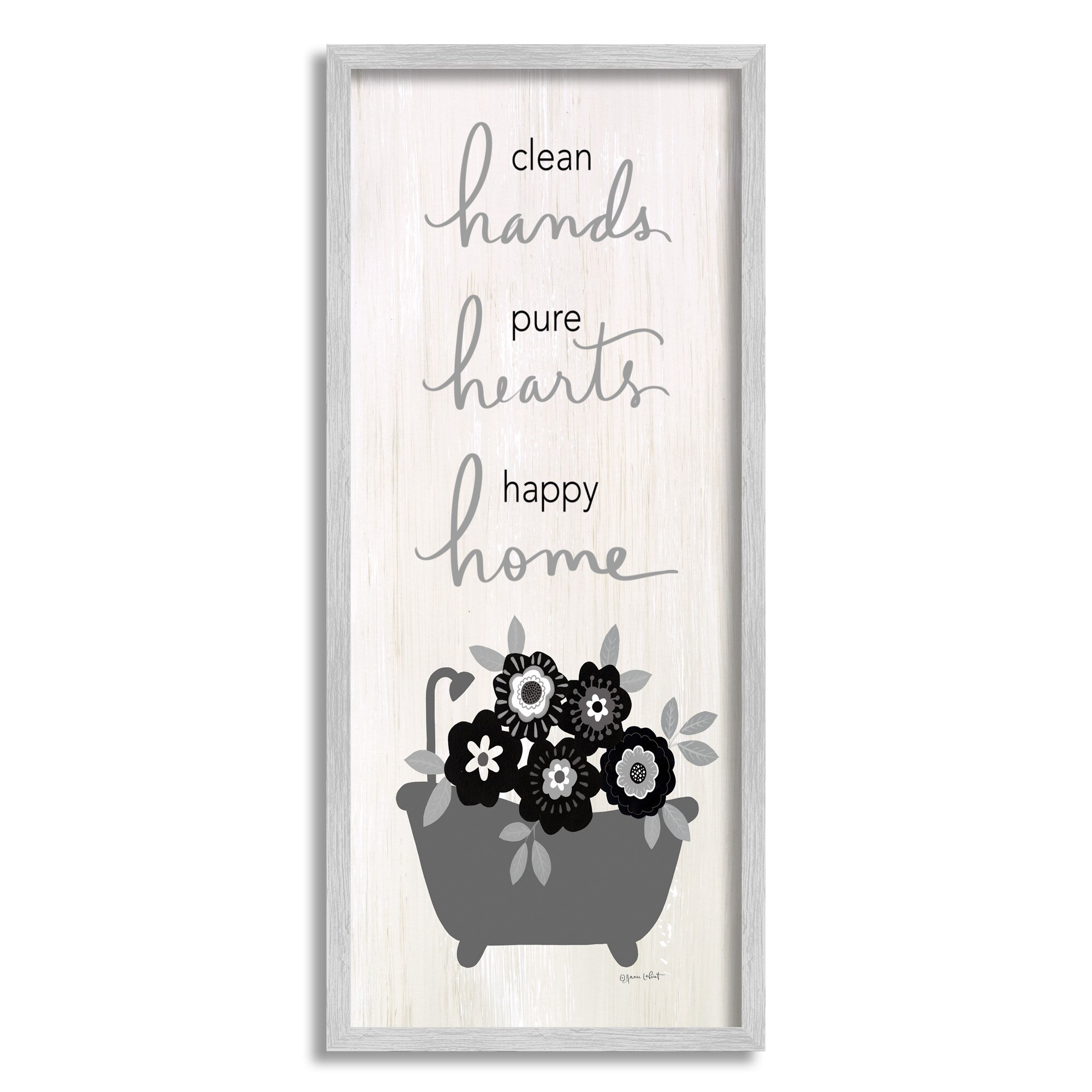 Stupell Clean Hands Pure Hearts Floral Bathroom Framed Giclee Texturized Wall Art, Design By Anna LaPoint