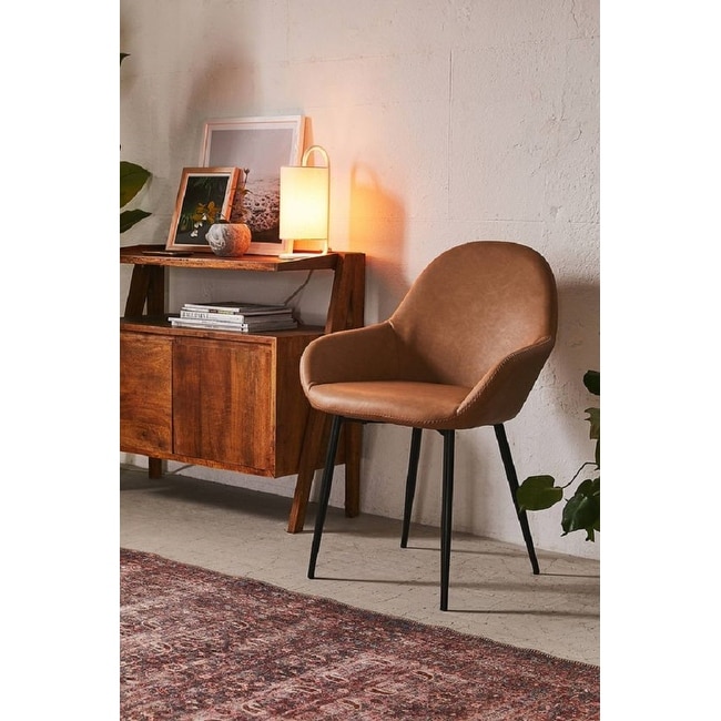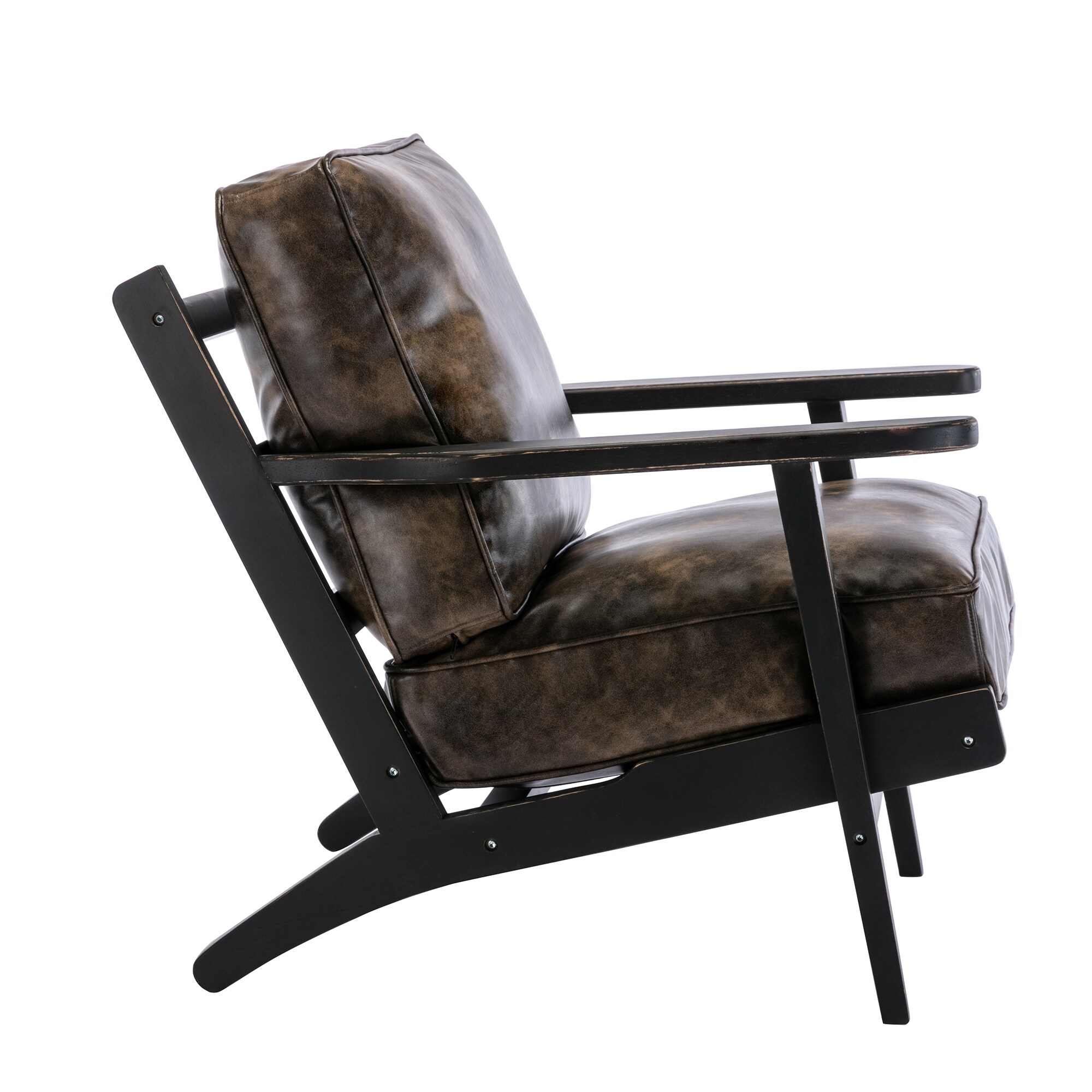 Solid Wood Removable Cushion Arm Chair, Mid-Century PU Leather Accent Chair
