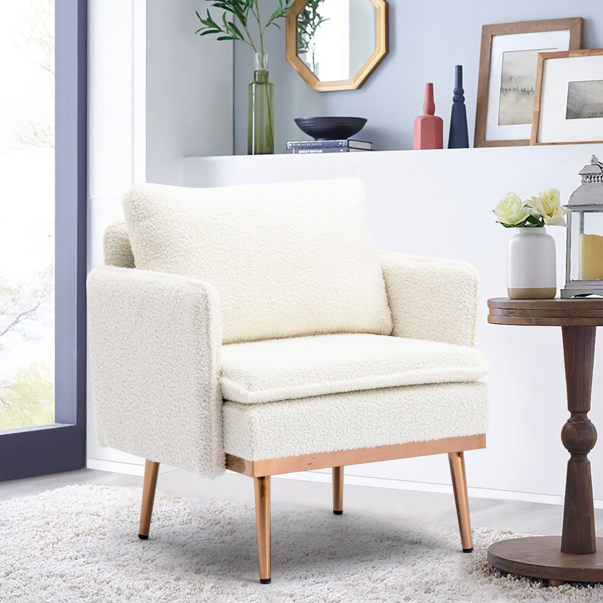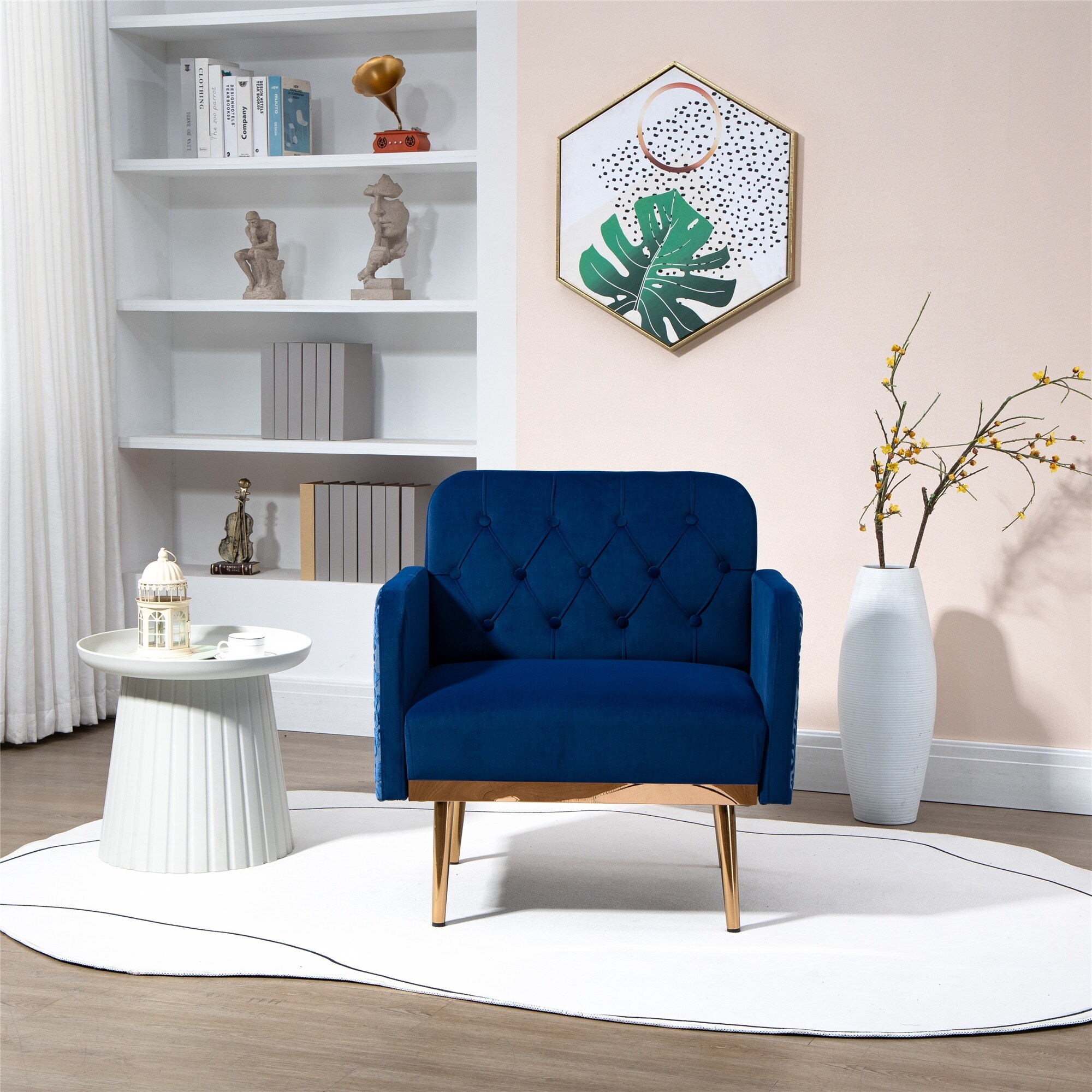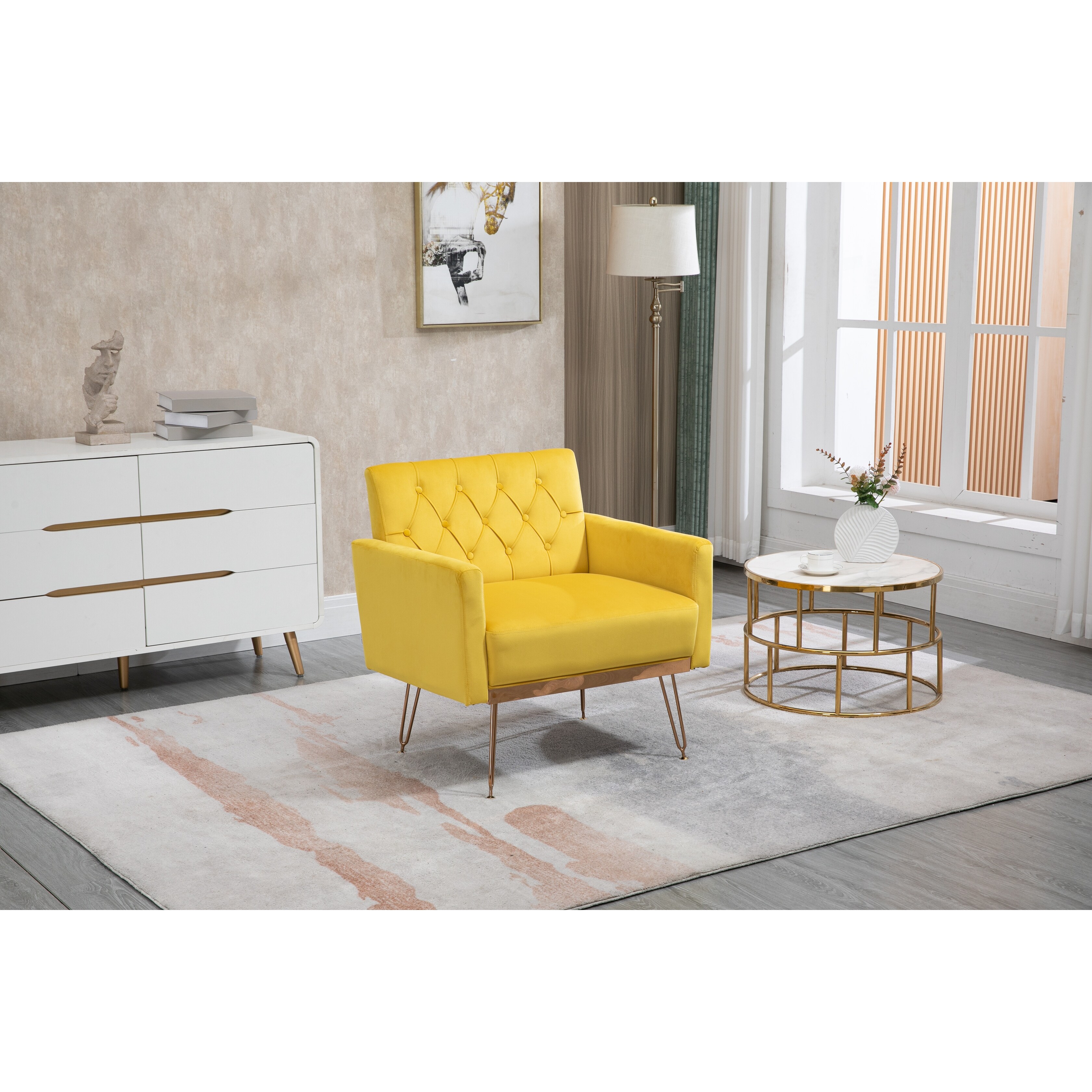 Accent Chairs Arm Chair Velvet Fabric Padded Seat with Metal Base and Button-tufted Backrest