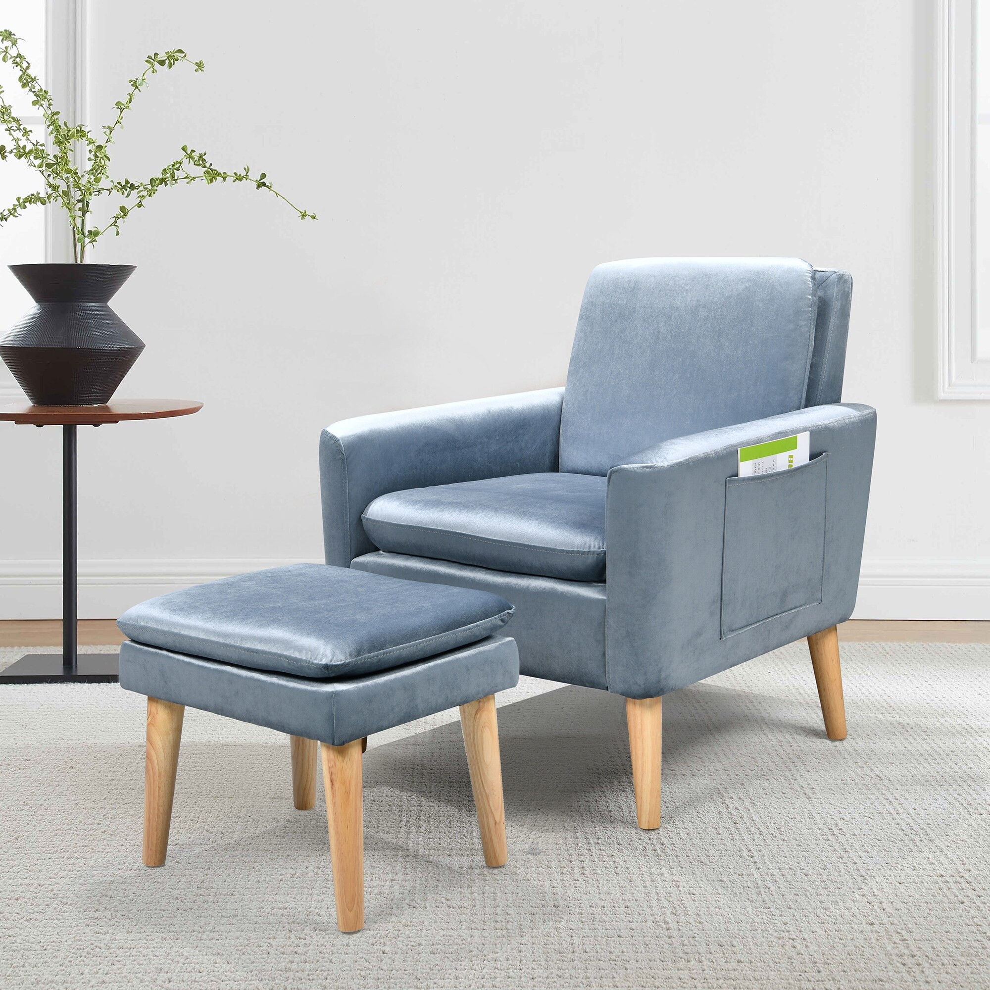 Velvet Arm Chair and Ottoman