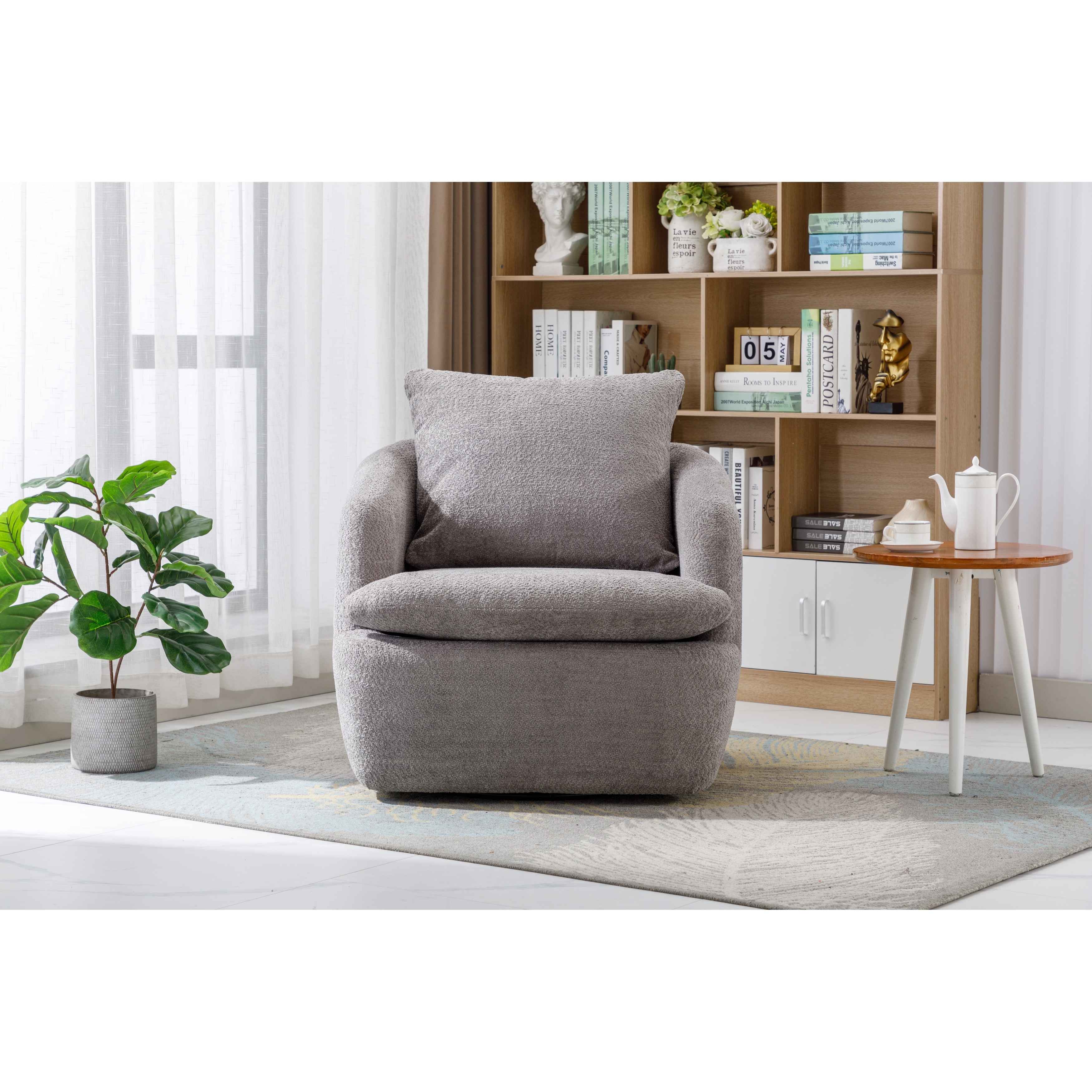 Chenille Barrel Chair Swivel Accent Arm Chair Ergonomic Single Sofa
