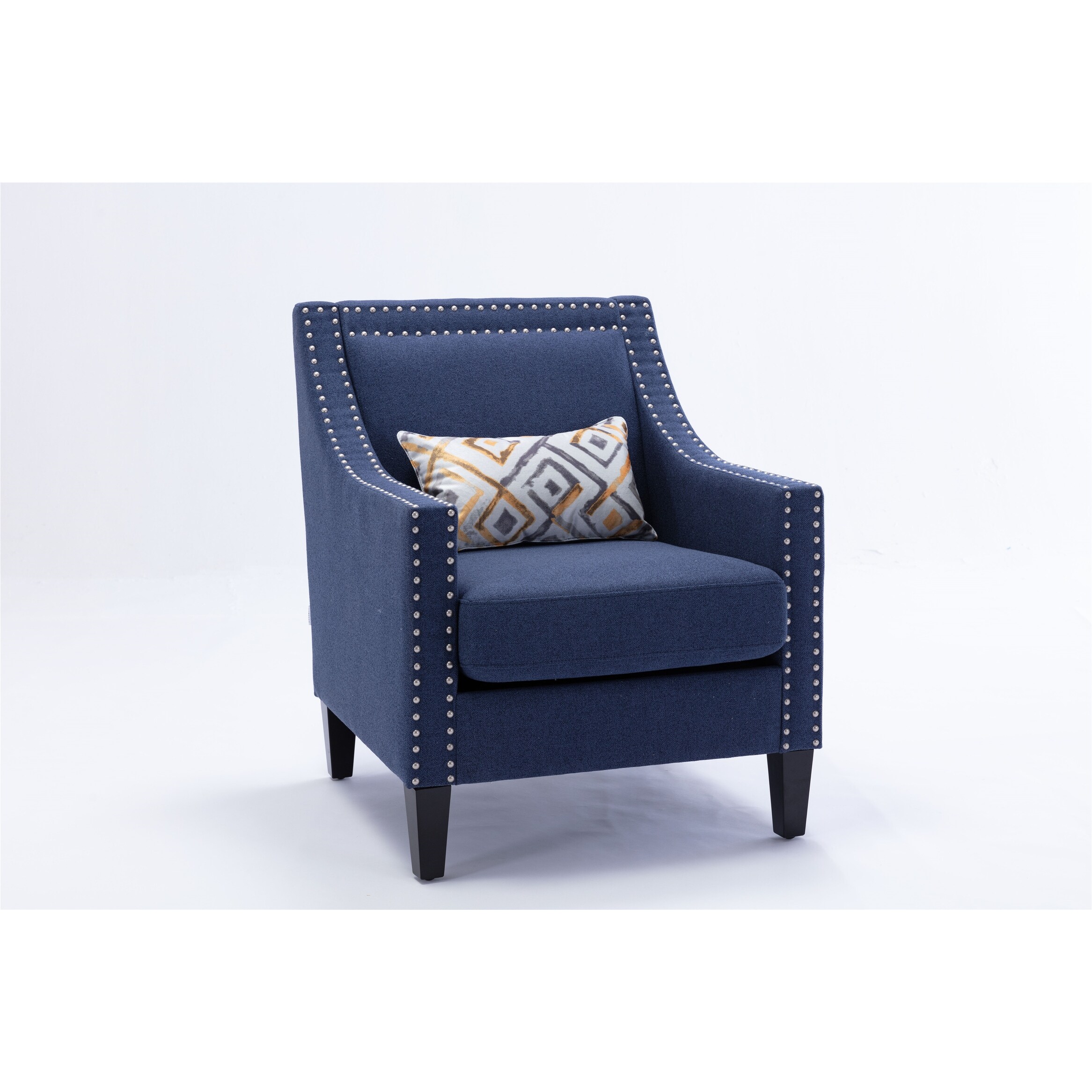 Accent Chair with Nailheads & Solid Wood Legs, Arm Chair with Throw Pillow