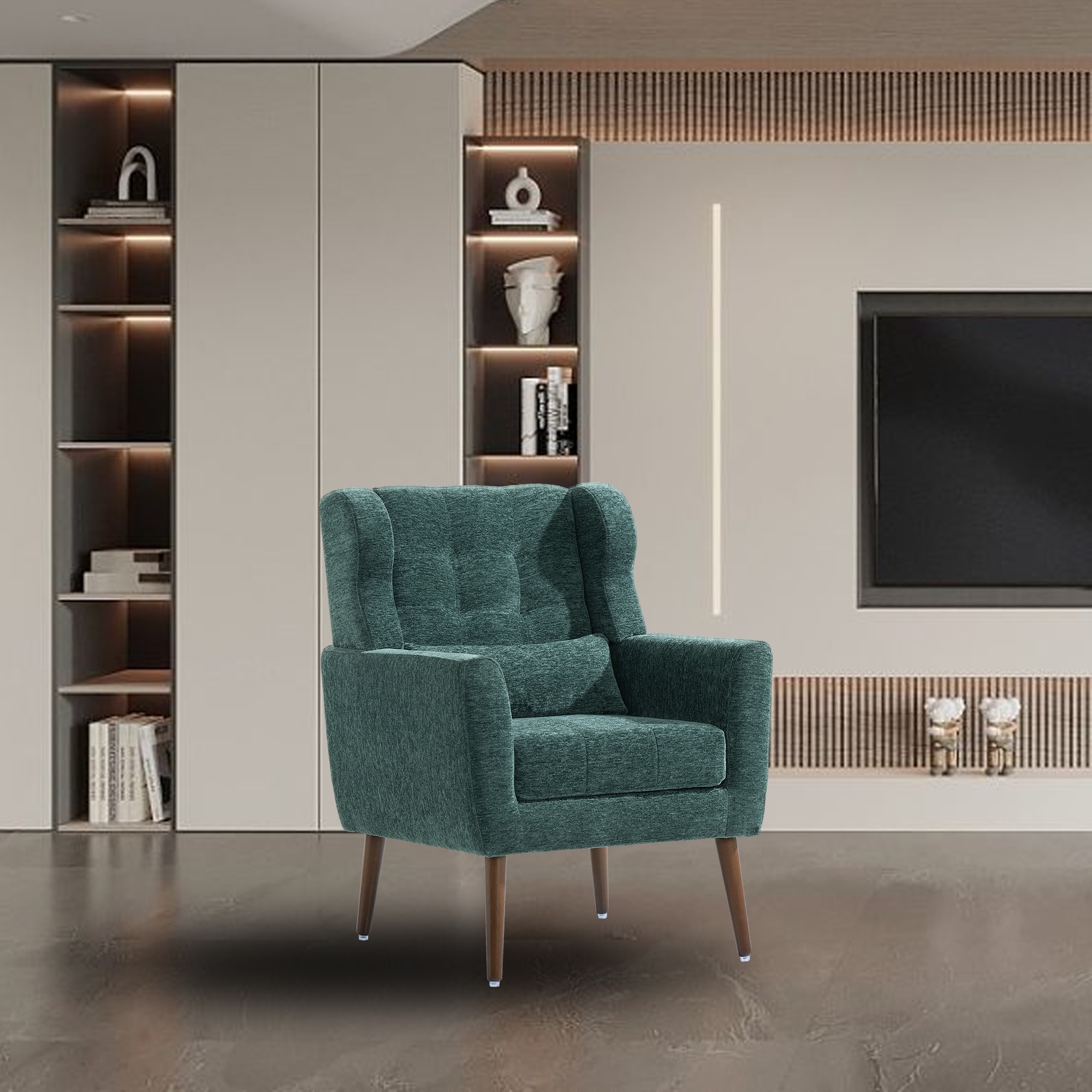 Upholstered Accent Chair Arm Chair with Lumbar Pillow and Metal legs