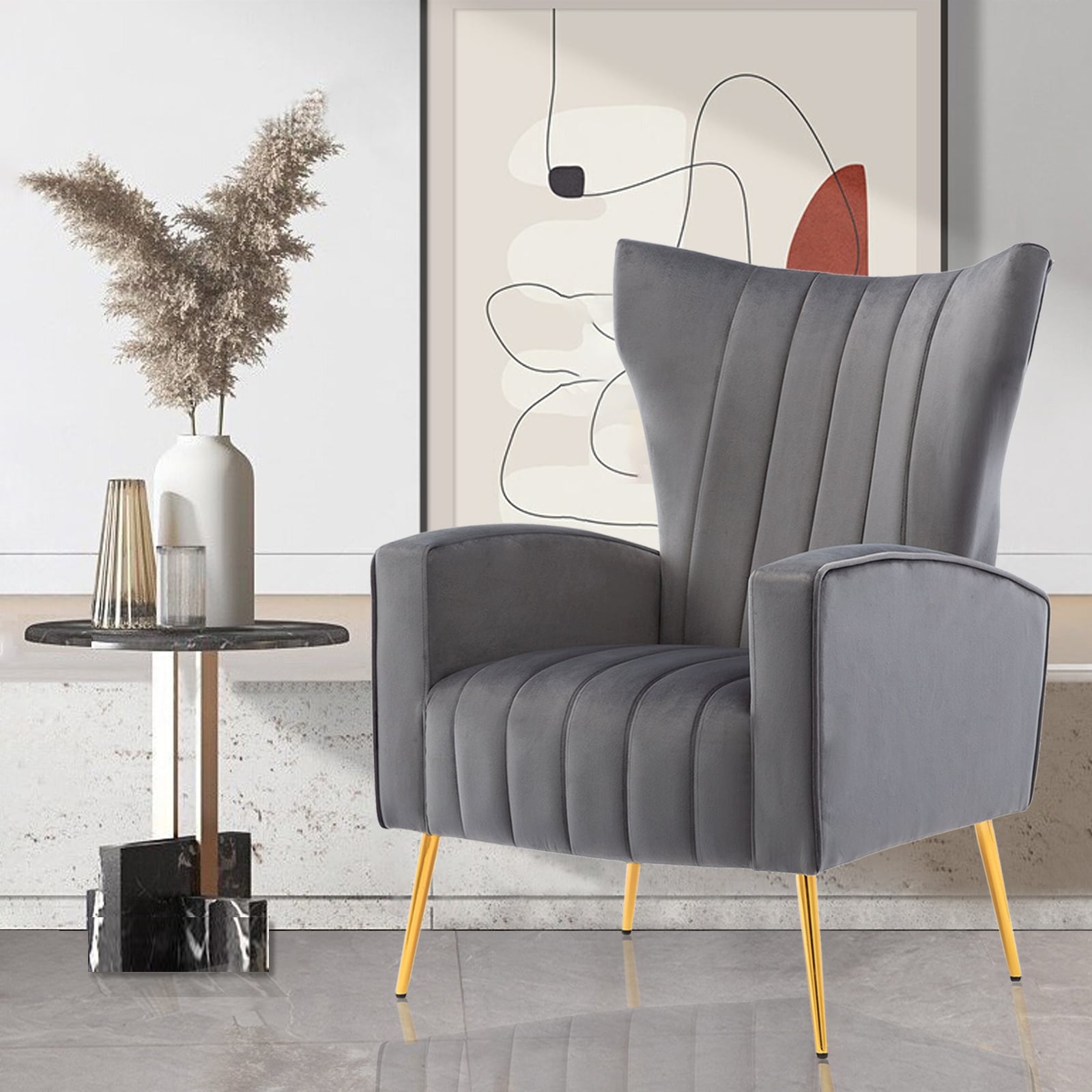 Velvet Accent Chair, Wingback Arm Chair with Gold Legs