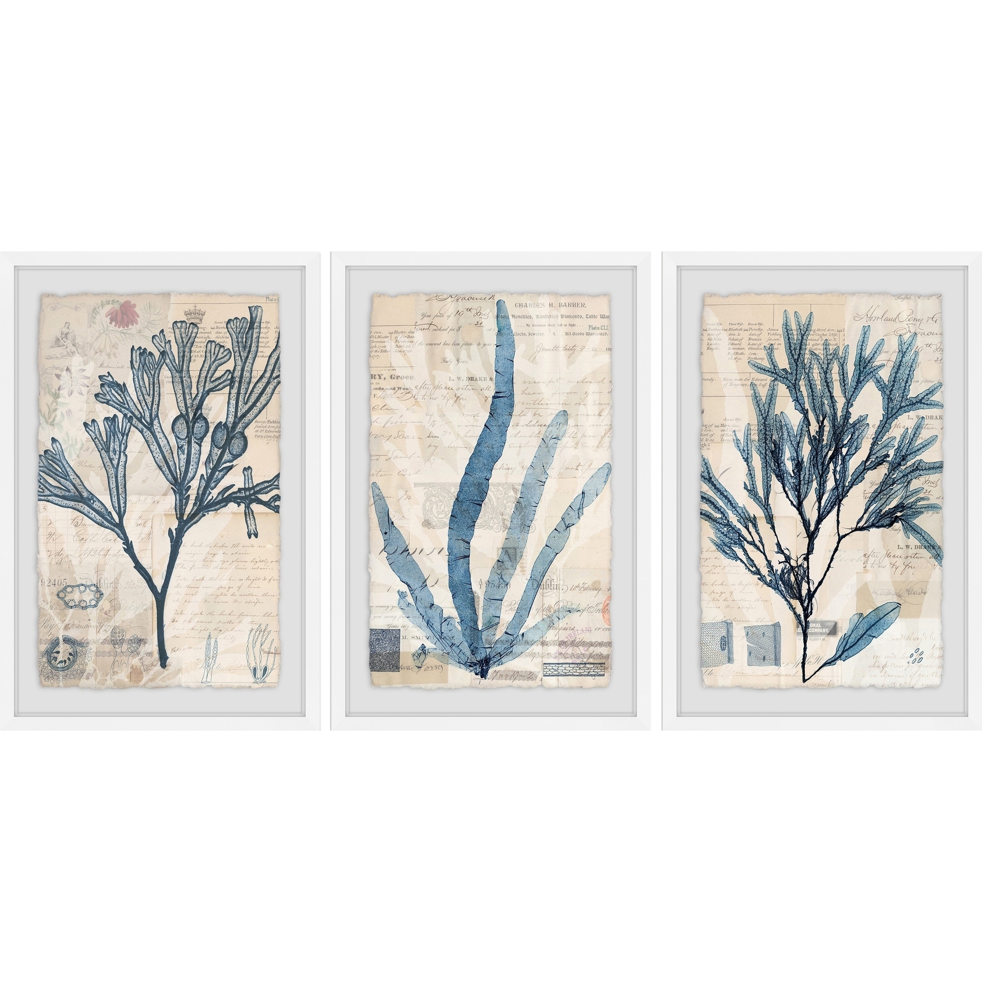 Marmont Hill - Handmade Seaweed Arrangement Triptych - Multi-color