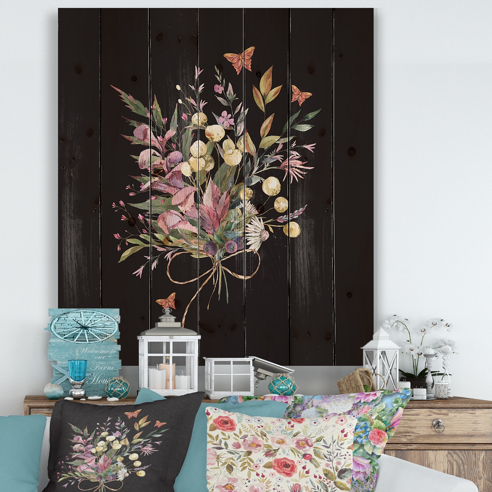 Designart 'Vintage Floral Summer Wildflowers Arrangement' Traditional Print on Natural Pine Wood