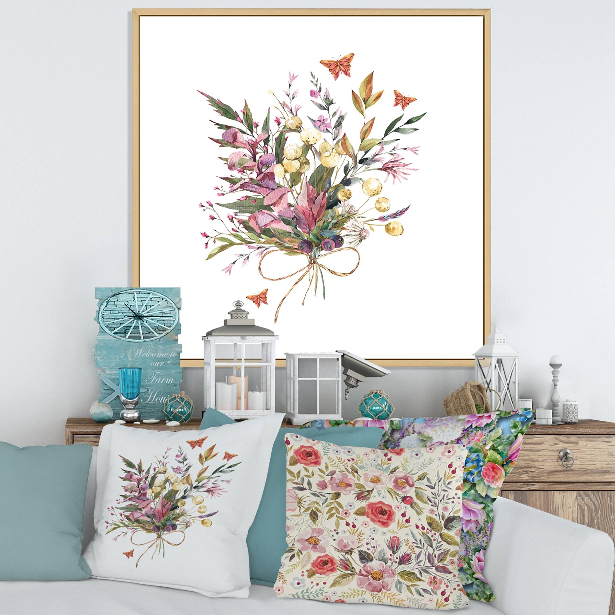 Designart "Vintage Floral Summer Wildflowers Arrangement" Traditional Framed Canvas Wall Art Print
