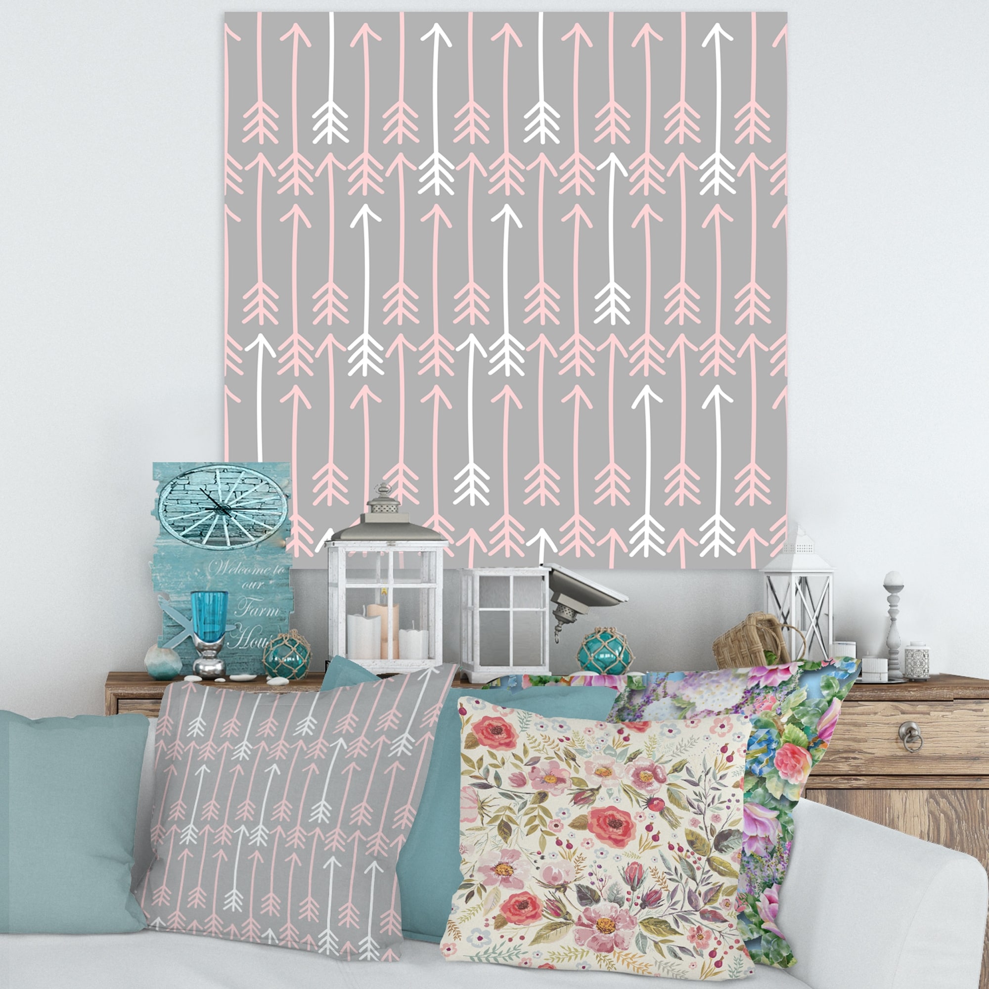 Designart "Pink And Gray Arrows" Bohemian Canvas Wall Art Print